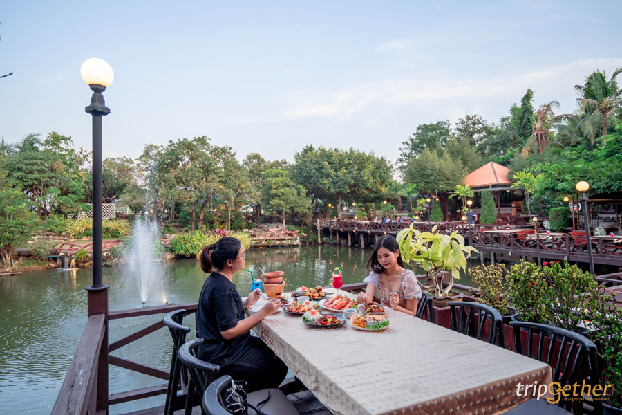 อิ่มบุญกันแล้ว แวะมาเติมความอิ่มท้องกันต่อที่ ร้านอาหารสวนภูมิทาน ร้านอาหารอยุธยาที่การนัตีเรื่องคุณภาพและความอร่อยด้วยระยะเวลาที่เปิดมากว่า 19 ปี พื้นที่ของร้านร่มรื่นปด้วยไม้ใหญ่และสระน้ำ โดยโซนที่นั่งมีให้เลือกทั้งโซนห้องแอร์ ห้องคาราโอกเะ แต่ที่เป็นไฮไลท์เลยก็คือโซนเอาท์ดอร์ริมน้ำ ให้ได้นั่งรับลมชิลล์ๆ หรือจะมองท้องฟ้าแบบ vanilla sky สบายๆ ในช่วงเย็นก้ฟีลดี ในส่วนของอาหาร ที่เป็นเมนูแนะนำเลยก็คือ หมูมะกรูดกรอบ แกงส้มชะอมปลาช่อนทอด กุ้งสวนภูมิทาน ปลากะพงทอดน้ำปลา ผัดฉ่าหมูแดดเดียว กุ้งเผา และเมนูอื่นๆ อีกเพียบ แวะมาฝากท้องสักครั้ง รับรองไม่ผิดหวัง