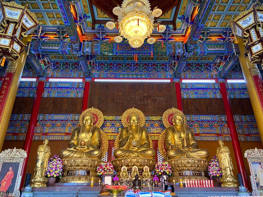 เริ่มต้นทริปกันที่ วัดบรมราชากาญจนาภิเษกอนุสรณ์ หรือวัดเล่งเน่ยยี่ 2 ที่มีความโดดเด่นในแง่ของสถาปัตยกรรมแบบจีนที่จำลองพระราชวังหลวงของกรุงปักกิ่ง โดยภายในอุโบสถประดิษฐาน พระศากยมุนีพุทธเจ้า พระอมิตพุทธเจ้า และพระไภษัชยคุรุไวฑูรย์พุทธเจ้า ให้ได้กราบสักการะเพื่อความเป็นสิริมงคล และยังสามารถทำพิธีสะเดาะเคราะห์ แก้ชง เสริมดวงกันอีกด้วย นอกจากจะได้เสริมดวง รับความเป็นสิริมงคลกันแล้ว ยังมีรูปสวยๆ ไว้อัปโซเชียลกันอีกด้วย