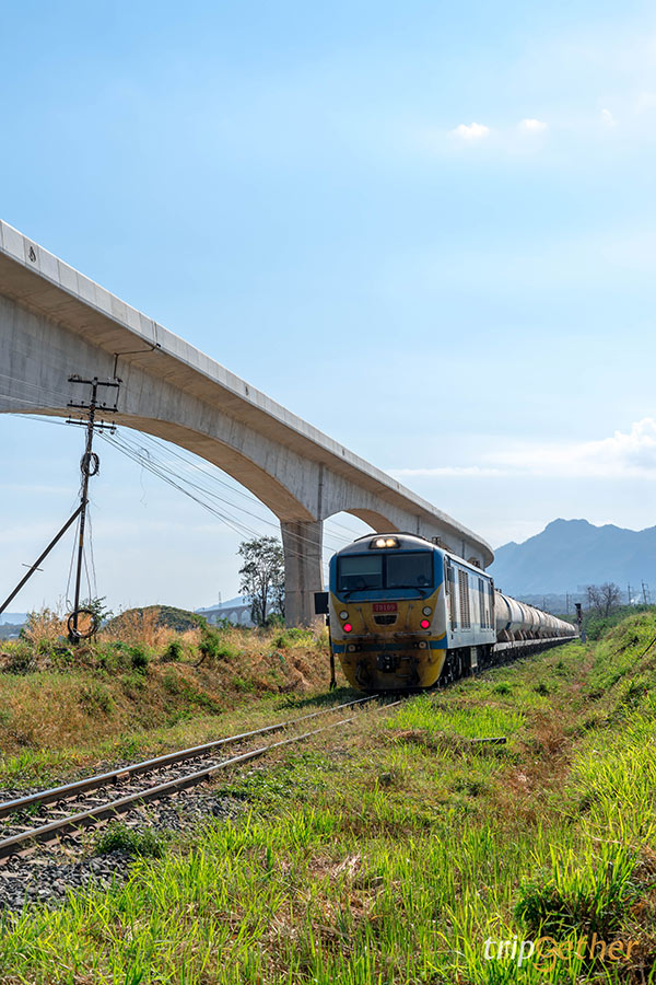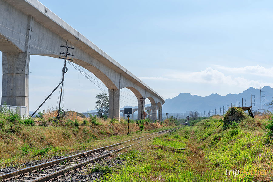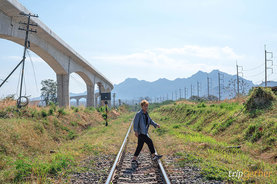 รางรถไฟทางคู่ยกระดับ จุดแวะเช็คอินที่กินเที่ยวสระบุรีจุดใหม่ เป็นทางรถไฟที่อยู่ระหว่างทางไปยังน้ำตกเจ็ดสาวน้อย ภาพของทางรถไฟที่อยู่ระหว่างผืนหญ้าที่ทอดยาว พร้อมกับภาพของวิวภูเขาและสีของท้องฟ้าสดใสเป็นฉากหลัง บวกกับเสาของทางรถไฟมุมโค้ง เป็นมุมที่ธรรมชาติสวยจนต้องแวะมาถ่ายรูปสักหน่อย มุมตรงนี้ไม่เหมือนกับอยู่ในประเทศไทยเลย ให้ฟีลอยู่ต่างประเทศ ต้องรีบมาแวะถ่ายรูปเช็คอินด่วนๆ