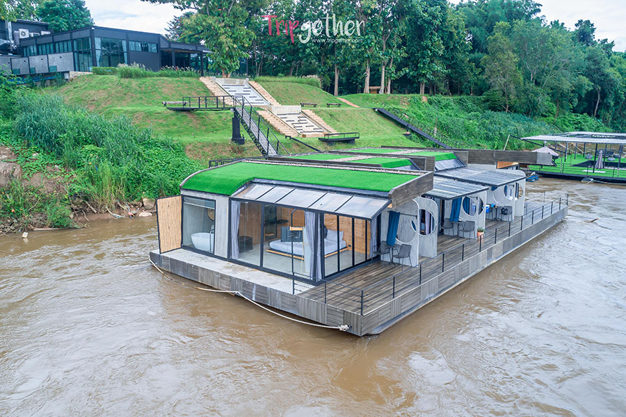 หนีไปนอนแพริมน้ำกันสักคืน กับที่พักแพพร้อมสระว่ายน้ำ ไทรโยคโฟลทเทล แพสไตล์ไทยบูติกสุดหรูริมแม่น้ำ มาพร้อมกับวิวโค้แม่น้ำแควที่สวยงามหน้าหินผาที่เรียงรายกันอย่างเป็นธรรมชาติ ถึงแม้จะเป็นแพแต่ที่นี่ก็มีสิ่งอำนวยความสะดวกที่ครบครัน และยังมีไฟฟ้าให้ใช้ตลอด 24 ชั่วโมงอีกด้วย สำหรับห้องพักของที่นี่มีทั้งแบบเตียงเดี่ยวและเตียงคู่ ไม่ว่าจะชวนแฟนมาสวีท คู่ซี้ หรือครอบครัว ก็เหมาะทั้งนั้น ด้วยวิวทิวทัศน์ที่เป็นเอกลักษณ์ของไทรโยคโฟลทเทล จึงเป็นที่พักฮิตติดหูของเหล่านักท่องเที่ยวจำนวนมากเลยทีเดียว ไฮไลท์มาลงแพที่นี่ต้องไม่พลาดทำกิจกรรมล่องแพเปียก และว่ายน้ำที่สระกลางแจ้งที่รับรองว่าการพักผ่อนครั้งนี้คุณจะฟินลืมอย่างแน่นอน…
