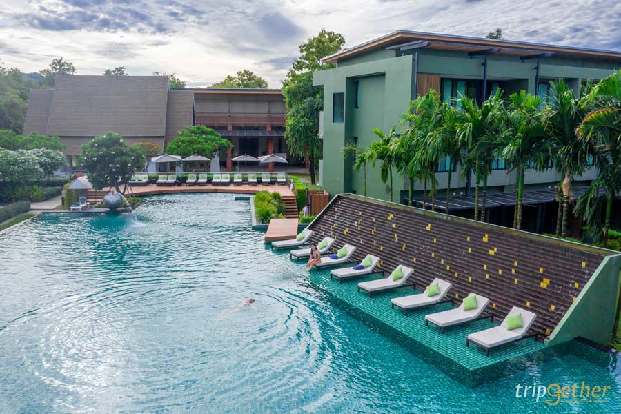 มาต่อกันที่ ไมด้า รีสอร์ท (Mida Resort Kanchanaburi) ที่พักกาญจนบุรี ในตัวเมือง ตั้งอยู่ท่ามกลางธรรมชาติ ขนาบด้วยต้นไม้เขียวขจี และติดกับแม่น้ำแควใหญ่ บรรยากาศร่มรื่นด้วยการดีไซน์แบบ Eco-friendly เหมาะสำหรับวันพักผ่อนสบายๆ ด้วยจำนวนห้องพัก 189 ห้อง หลากหลายรูปแบบให้ได้เลือกพักตามความชอบ โดยมีทั้งแบบ เต็นท์ติดแอร์ใกล้แม่น้ำ และห้องพักแบบ พูลวิลล่า ที่มีสระว่ายน้ำส่วนตัว นอกจากนี้ทางที่พักยังมีสระว่ายน้ำกลางแจ้งขนาดใหญ่ 2 สระ (มีโซนเด็ก) ครอบครัวไหนกำลังหาที่พักชิลล์ๆ ที่มาพร้อมสิ่งอำนวยความสะดวกครบครันต้องที่นี่เลย