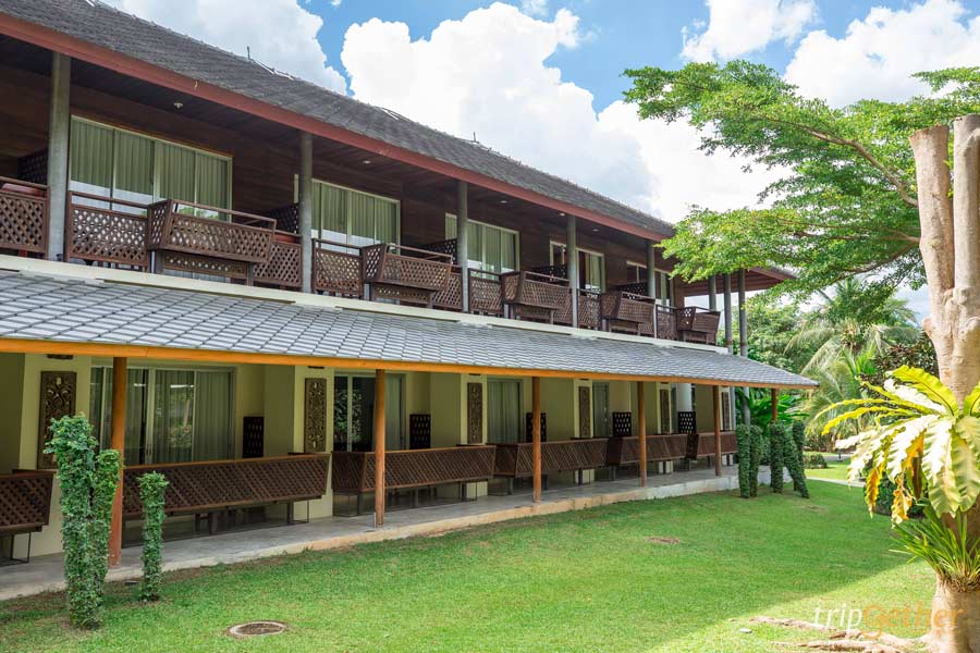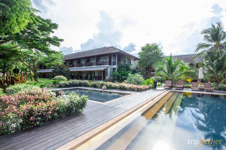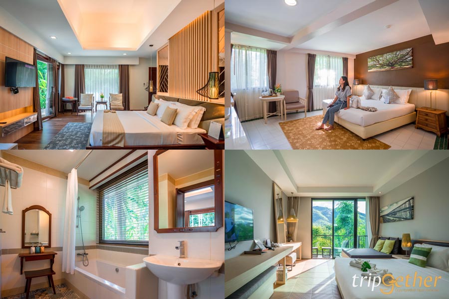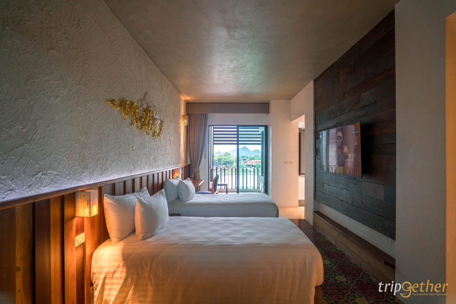 และสำหรับ ที่พักกาญจนบุรี ในตัวเมือง พิกัดที่สี่ นั่นก็คือ รอยัล ริเวอร์แคว รีสอร์ท แอนด์ สปา (Royal Riverkwai Resort and Spa) ตั้งอยู่ริมฝั่งแม่น้ำแคว พิกัดที่พักอยู่ห่างจากสถานที่ท่องเที่ยวยอดนิยมหลายแห่ง เช่น สะพานข้ามแม่น้ำแคว สุสานทหารสัมพันธมิตร ถนนคนเดินปากแพรก วัดถ้ำพุหว้า ปราสาทเมืองสิงห์ เมืองมัลลิกา ในส่วนของห้องพักการออกแบบโดยใช้แรงบันดาลใจจากศิลปะแบบไทยประยุกต์ โดยใช้เฉดสีน้ำตาลที่อบอุ่นของผนังไม้ เฟอร์นิเจอร์ไม้ให้ความรู้สึกอบอุ่นสบายตามากๆ แถมยังสามารถมองเห็นทิวทัศน์ของสวนสไตล์เขตร้อนที่เต็มไปด้วยพืชพรรณอันเขียวชอุ่ม นอกจากนั้นภายในรีสอร์ทยังมี สระว่ายน้ำกลางแจ้งขนาดใหญ่ล้อมรอบด้วยต้นมะพร้าวและบริการสปาสุดผ่อนคลาย