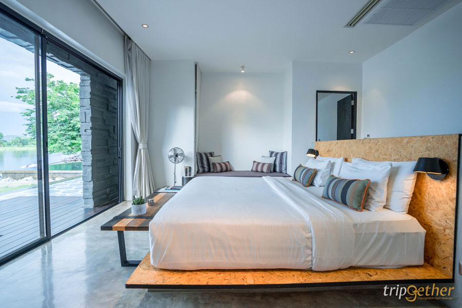 หนีฝุ่นเมืองกรุงฯ ไปนอนริมน้ำชิลๆ ที่ ครอส ริเวอร์แคว รีสอร์ท (Cross River Kwai) ที่โดดเด่นและเป็นเอกลักษณ์กับห้องพักลอยน้ำสุดหรู วิวแม่น้ำแควน้อยพร้อมวิวของภูเขาเป็นฉากหลังและท้องฟ้าทอแสงที่ทองตัดกับทุ่งหญ้าสีเขียวสวยงามอย่างกับภาพวาดเลยล่ะ มีห้องพักหลากหลายขนาด และหลายบรรยากาศให้ได้เลือกพัก ไม่ว่าจะเป็น พูลวิลล่าแบบ Fallingwater Pool Villa ทั้งแบบ One Bedroom และ Two Bedroom และเคบินลอยน้ำสุดเก๋ในกาญจนบุรีให้เลือกเช็คอิน ซึ่งแต่ละแบบตกแต่งได้หรูหราน่านอนมาก