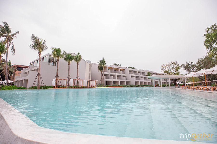 VALA Hua Hin-Nu Chapter Hotels ที่พักติดชายหาดบรรยากาศดี ที่มาพร้อมกับการออกแบบที่หรูหราและตอบโจทย์การมาใช้วันเวลาสบายๆ ริมทะเล ที่นี่ตกแต่งด้วยคอนเซ็ปต์ที่ผสมผสานเอาความเป็นสมัยใหม่เข้ากับธรรมชาติได้อย่างลงตัว ห้องพักแต่ละห้องมีพื้นที่กว้างขวาง หรูหรา และมีสิ่งอำนวยความสะดวกครบครัน แถมยังมองเห็นวิวทะเลและชายหาดได้ ในส่วนของส่วนกลางก็ยังมีสระว่ายน้ำเอาท์ดอร์ขนาดใหญ่ให้ได้ที่มีวิวทะเลเป็นฉาก พร้อมกับเก้าอี้อาบแดดดให้ได้ออกมานอนรับลมทะเลแบบชิลล์ๆ ใครที่กำลังมองหาที่พักดีๆ แบบอยู่ติดทะเลอยู่ล่ะก็ ขอแนะนำที่นี่เลย