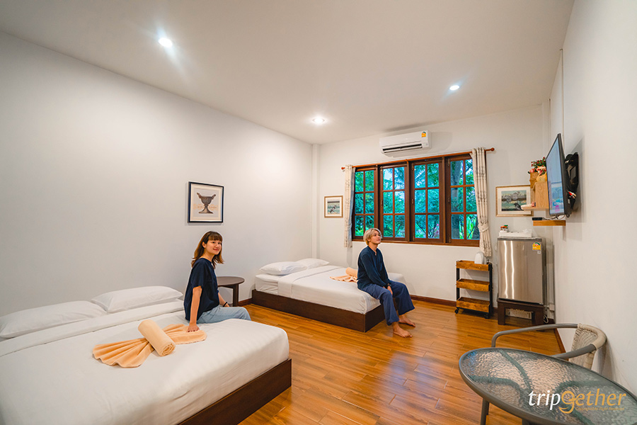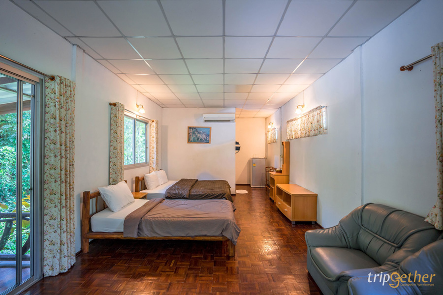 บ้านสาริกาวอเตอร์ฟอลล์วิว ตั้งอยู่ติดริมน้ำบนพื้นที่ส่วนตัว มาพร้อมกับบรรยากาศเงียบสงบเหมาะแก่การมาพักผ่อน ใครที่มาพักก็จะได้วิวธรรมชาติแบบเต็มๆ ทั้งลำธารใส ฝายกั้นน้ำที่ไหลลงมาเหมือนน้ำตก และความเขียวขจีของต้นไม้ใบหญ้า บอกเลยว่าความชิลล์เต็มสิบไม่หัก มาต่อในบ้านพักมีห้องนอน 6 ห้อง แบ่งเป็นห้องเล็ก 4 ห้องและห้องใหญ่ 2 ห้อง ผู้เข้าพักถ้ามาเป็นกลุ่มใหญ่ก็สามารถจองเหมาหลังเป็นวิลล่าส่วนตัวได้ ซึ่งเข้าพักได้มากถึง 44 คน หรือถ้าใครมากลุ่มเล็กๆ ก็สามารถจองแยกเฉพาะห้องได้ ถือว่าเป็นที่พักที่ตอบโจทย์ทุกกลุ่มจริงๆ นอกจากนี้ภายในที่พักยังมีกิจกรรมให้ทำเพียบ ทั้งพายเรือคายัค ปั่นจักรยาน เล่นน้ำ ปิ้งย่างบาร์บีคิว นอกจากบ้านสาริกาวอเตอร์ฟอลล์วิว ในเครือบ้านสาริกาก็ยังมีบ้านวิลอื่นที่ให้บรรยากาศต่างกันไป ทั้งบ้านสาริกาเมาเท่นวิว บ้านสาริกาการ์เด้นวิว และบ้านสาริการิเวอร์วิว ไม่ว่าจะหลังไหนก็บรรยากาศดี น่ามานอนพักผ่อนมาก เอาเป็นว่าวันหยุดเสาร์ – อาทิตย์ ถ้าอยากนอนเสพธรรมชาติฟินๆ รีบปักหมุดบ้านสาริกาไว้เลย