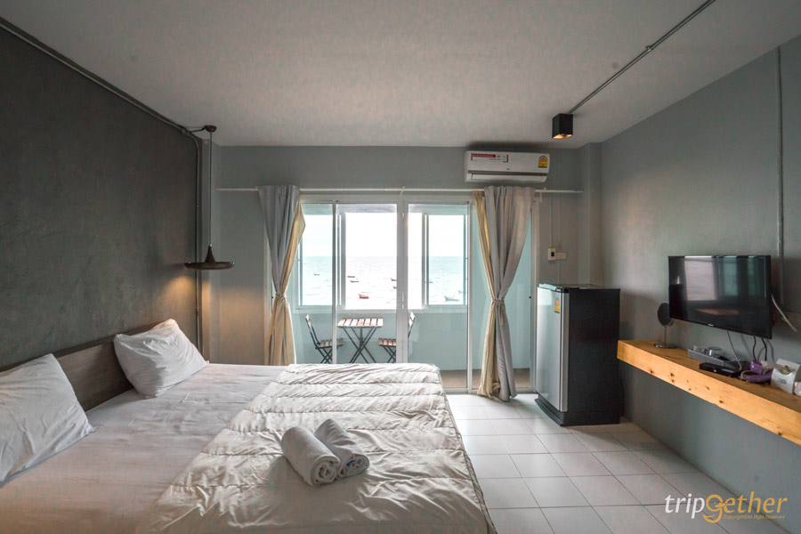 ซี แซนด์ ทรี (Sea Sand Trees) ที่พักบางแสน วิวทะเล ตั้งอยู่ติดกับหาดวอนนภา ข้ามถนนไปนิดๆ ก็สามารถเดินชิลล์ริมทะเลได้เลย แถมหาของกินง่ายทั้งสตรีทฟู้ดและของฝากเพียบ! ในส่วนของห้องพักมีให้เลือกพักทั้งห้องวิวทะเลและห้องวิวเมือง โดยสำหรับห้องวิวทะเลทุกห้องมาพร้อมหน้าต่างบานใหญ่ รับรองว่าเห็นภาพท้องทะเลแบบกว้างๆ เต็มตาอิ่มใจแน่นอน แถมมีระเบียงให้ได้นั่งชิลล์ รับลมทะเลสบายๆ สิ่งอำนวยความสะดวกก็ครบครัน วันหยุดนี้ใครมาบางแสนและมองหาที่ที่พักบรรยากาศดีใกล้ชายหาดให้ปักหมุดมาที่นี่เลย