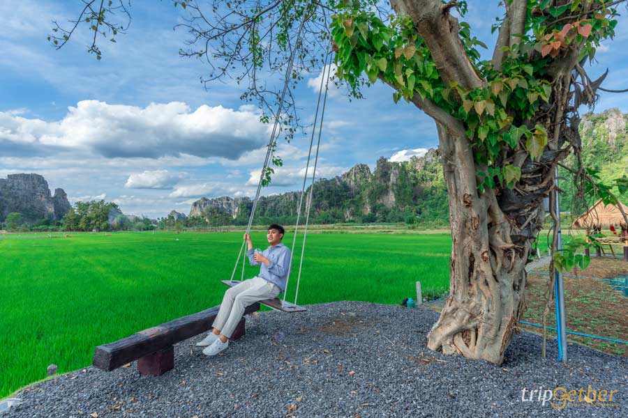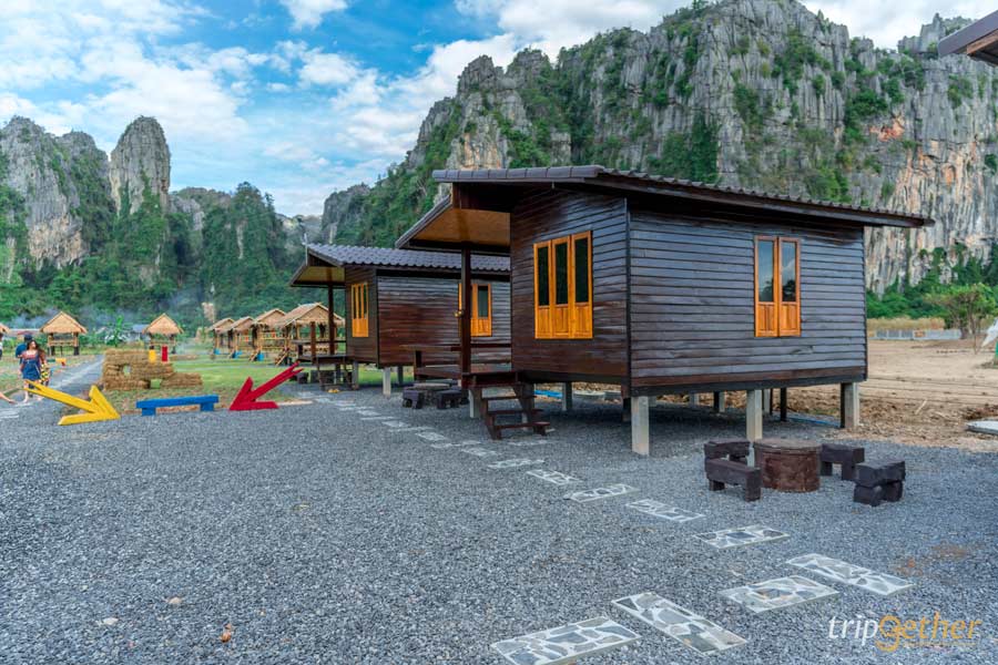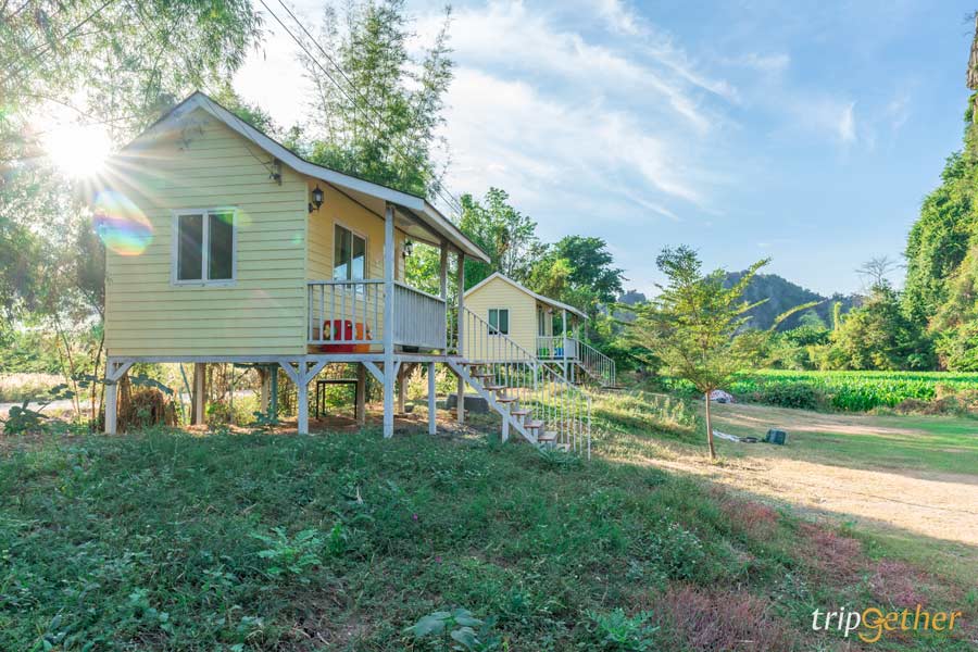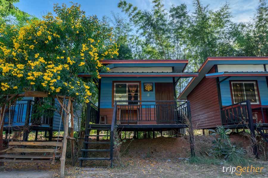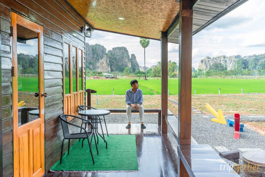 มาต่อกันที่ บ้านไร่ภูตะวัน (Baanrai Phutawan) อีกหนึ่ง ที่พักบ้านมุง-เนินมะปราง บรรยากาศดี ตั้งอยู่ท่ามกลางขุนเขาหินปูน บริเวณพื้นที่ของบ้านไร่ภูตะวันมีทั้งบ้านพัก ร้านอาหาร คาเฟ่ และไฮไลท์ อย่าง สะพานดอกไม้ซึ่งสามารถมาเที่ยวได้ตลอดทั้งปีเลยนะ ในส่วนของบ้านพักตกแต่งด้วยสไตล์เรียบง่าย เน้นการพักผ่อนไปกับธรรมชาติที่เพียงแค่เปิดประตูบ้านพักออกมาก็จะได้พบกับวิวดอกไม้สีเหลืองอร่ามพร้อมภูเขาหินปูนเป็นฉากหลัง เรียกได้ว่าเป็นที่พักหลักร้อยธรรมชาติหลักล้านเลยล่ะ
