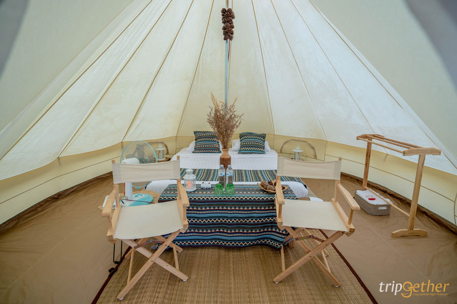 พามาสโลว์ไลฟ์ใกล้ชิดธรรมชาติ สไตล์แคมป์ปิ้ง ที่ จัมทราแคมป์ปิเนส (Jumtla Campiness) ที่พักบ้านมุง-เนินมะปราง พิษณุโลก โดดเด่นด้วยเต็นท์กระโจมสุดชิคที่มาพร้อมหลังคารูปเพชรเป็นมุมถ่ายรูปสวยๆ ได้อีกด้วย ตั้งอยู่ภายใน View Camp ขุนเขารักไทย บริเวณริมหน้าผา ท่ามกลางธรรมชาติอันอุดมสมบูรณ์ สามารถมองเห็นวิวภูเขาได้จากหน้าที่พักเลย นอกจากนี้ที่นี่ยังมีลานกางเต็นท์ให้เราสามารถนำอุปกรณ์มาติดตั้งกางเต็นท์สัมผัสหมอกพร้อมชมวิวสวยๆ เสพบรรยากาศ