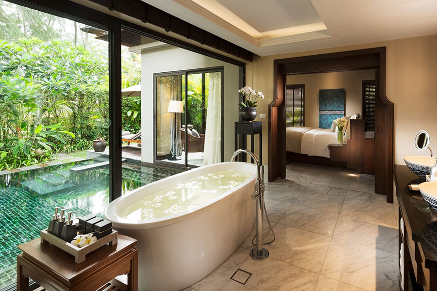Rosewood Phuket ที่พักหรูที่นำเอาแนวคิดของรีสอร์ทเข้ากับธรรมชาติมาผสมผสานกันได้อย่างลงตัว ภายในห้องพักเน้นการตกแต่งแบบเรียบง่ายจัดสรรพื้นที่ภายในห้องพักได้อย่างลงตัว เพียบพร้อมไปด้วยสิ่งอำนวยความสะดวกครบครัน สำหรับคนรักต้นไม้ต้องบอกเลยว่าจะหลงรักที่นี่อย่างไม่รู้ตัวเลย เพราะบรรยากาศโดยรอบพื้นที่นั้นเต็มไปด้วยความเขียวชอุ่มให้ความรู้สึกผ่อนคลายแถมได้สูดโอโซนดีๆ อีกด้วย เรียกได้ว่า โรสวู้ด ภูเก็ต เป็นอีกหนึ่งที่พักที่เหมาะหนีไปพักผ่อนนอนสัมผัสลมทะเลจริงๆ