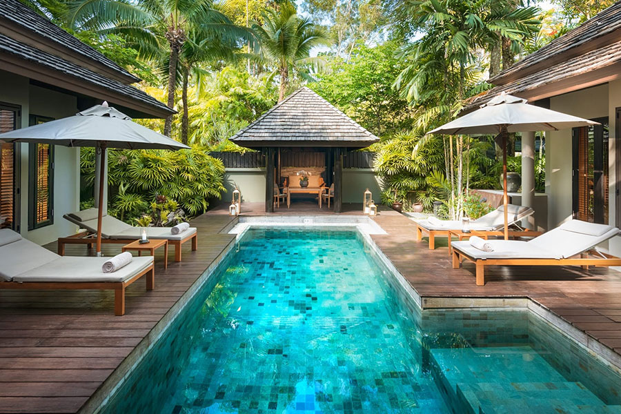 COMO Point Yamu, Phuket ที่พักหรูตั้งอยู่ที่ปลายแหลมมาลายูมาพร้อมวิวสวยของท้องทะเลอันดามันและเขาหินปูนแห่งอ่าวพังงา เน้นการตกแต่งสไตล์ไทยร่วมสมัยนำเสนอความหรูหรา ลวดลายกราฟฟิคที่เป็นเหมือนสัญลักษณ์ของที่นี่ สำหรัับห้องพักแบ่งออกเป็น 17 แบบ โดยจะเน้นการตกแต่งในโทนสีขาวตัดกับโทนสีฟ้าน้ำทะเลให้บรรยากาศสุดสดใส ภายในจัดสรรพื้นที่ใช้งานได้เป็นอย่างดี เป็นอีกหนึ่งที่พักที่เหมาะหนีมานอนชิลล์