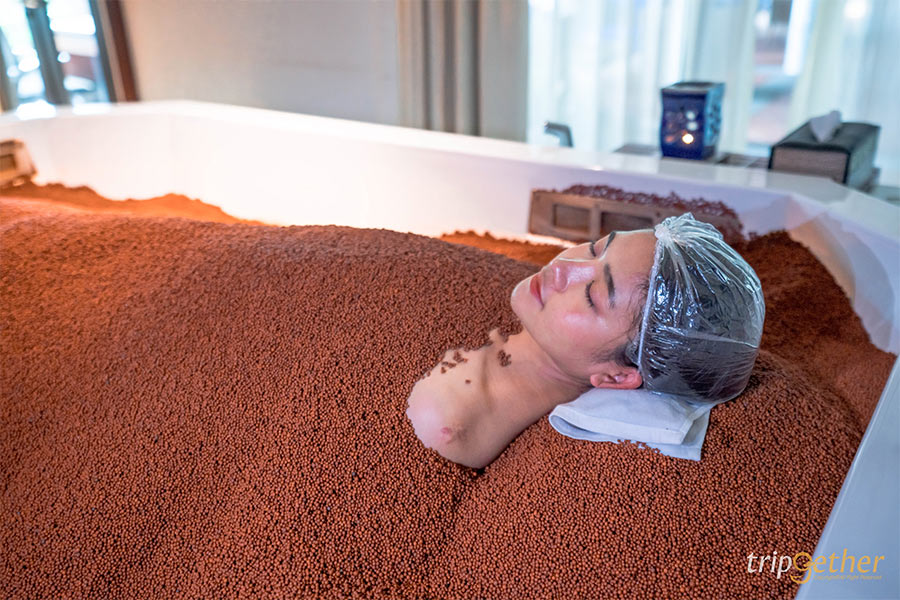 Aksorn Rayong The Vitality Collection ที่พักหรู 5 ดาวติดทะเล ใกล้กับหาดทรายแก้ว โดดเด่นด้วยสไตล์ไทยร่วมสมัย มีความเรียบหรูและสวยงาม มาพักที่นี่จะได้ผ่อนคลายทั้งร่างกายและจิตใจ ไฮไลท์ที่มาแล้วต้องลอง คือ สปาหินภูเขาไฟ ซึ่งนอนบนทรายร้อนๆ จะช่วยเรื่องการหมุนเวียนโลหิตและขับสารพิษออกจากร่างกาย รวมถึงลดความตึงเครียดของกล้ามเนื้อ บอกเลยว่าหลังจากทำสปาเสร็จแล้วรู้สึกเบาสบายตัวมากๆ นอกจากนี้ห้องพักยังมีให้เลือกหลายสไตล์และยังมีร้านอาหารริมทะเลที่ฟีลกู๊ดมาก ถือว่าเป็นที่พักมีสปา ใกล้กรุงเทพที่มานอนแล้ว ไม่อยากจะกลับบ้านเลย!