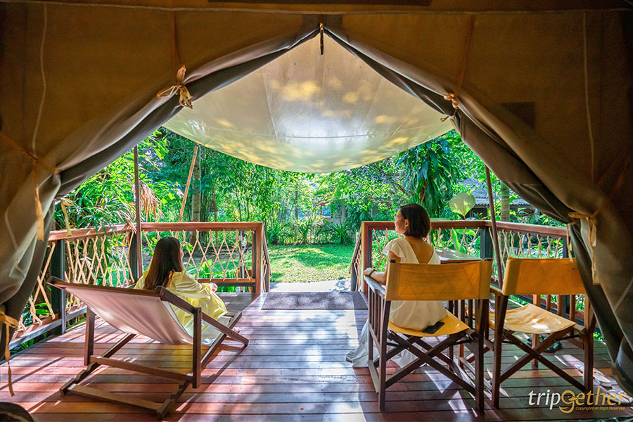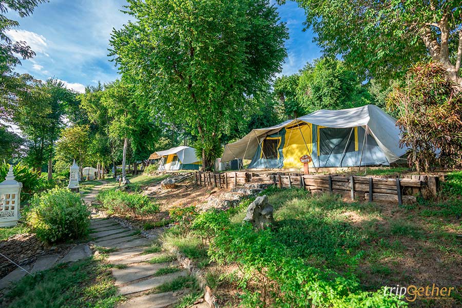 หินตก ริเวอร์ แคมป์ ณ ช่องเขาขาด ที่พักสไตล์แกลมป์ปิ้งริมแม่น้ำแควน้อยกับการมาพักผ่อนใกล้ชิดธรรมชาติ ดีท็อกซ์ความเหนื่อยล้าด้วยการสูดกลิ่นอายป่าไม้และสายน้ำ สำหรับห้องพักที่นี่จะเป็นเต็นท์หรูขนาดใหญ่ที่สามารถพักได้สูงสุด 3 คน ภายในกว้างขวางพร้อมห้องน้ำส่วนตัวและระเบียงหน้าบ้าน อีกทั้งยังมีบ่อน้ำแร่กลางแจ้งและนวดแผนไทยที่จะช่วยฟื้นฟูร่างกายและจิตใจ สำหรับใครที่อยากหนีความวุ่นวายมาให้ธรรมชาติชะล้างความเหนื่อยล้า ปักหมุดมาที่นี่เลย