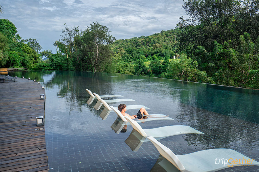 The Sense Resort Kanchanaburi ที่พักมีสปา ใกล้กรุงเทพ ถูกโอบล้อมด้วยความร่มรื่นของป่าไม้ เต็มไปด้วยความเงียบสงบและบรรยากาศของการพักผ่อน ห้องพักของที่นี่จะแบ่งหลักๆ เป็น 2 แบบ คือ The Jungle Villa วิลล่าท่ามกลางธรรมชาติ และ The Lake Jacuzzi Villa วิลล่าริมน้ำที่มีสระน้ำระบบจากุซซี่แบบเอาท์ดอร์ ให้ได้แช่น้ำผ่อนคลายความเมื่อยล้า สำหรับสปาของที่นี่จะเป็นแบบนวดแผนไทยพร้อมห้องสตรีมอบไอน้ำ ช่วยลดความเครียด ขับสารพิษ และกระตุ้นการหมุนเวียนโลหิต รวมถึงยังมีฟิตเนสและสระว่ายน้ำ Infinity Pool ที่ยาวที่สุดในกาญจนบุรีให้ได้ออกกำลังกายกันแบบเต็มที่