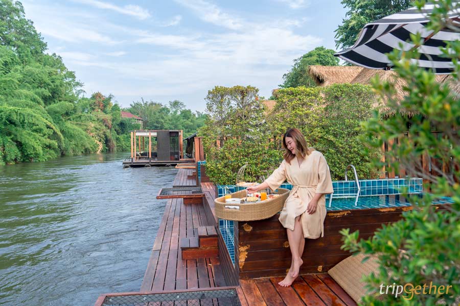 สายธรรมชาติ หรือสายพักใจปักหมุดมานอนที่ แพวังนกแก้ว พาร์ค วิว ที่พักแพลอยอยู่บนผืนน้ำกลางเขื่อน รายล้อมด้วยภูเขาและผืนน้ำ บอกเลยว่าวิวสวยมาก บรรยากาศสงบ เย็นสบาย พักผ่อนกันได้แบบเต็มที่ เป้นอีกหนึ่ง ที่พักรวมอาหารเช้าเย็น โดยมื้อเย็นเสิร์ฟเป็นอาหารพื้นบ้านเมืองกาญจน์รสชาติอร่อย ใครได้กินก็รับรองว่าจะต้องติดใจ ในส่วนมื้อเช้ามาในแบบของ Floating Breakfast ถาดอาหารลอยน้ำในสระส่วนตัว ที่เห็นแล้วอดถ่ายรูปไม่ได้จริงๆ อย่าลืมเตรียมชุดว่ายน้ำมากันด้วยนะ