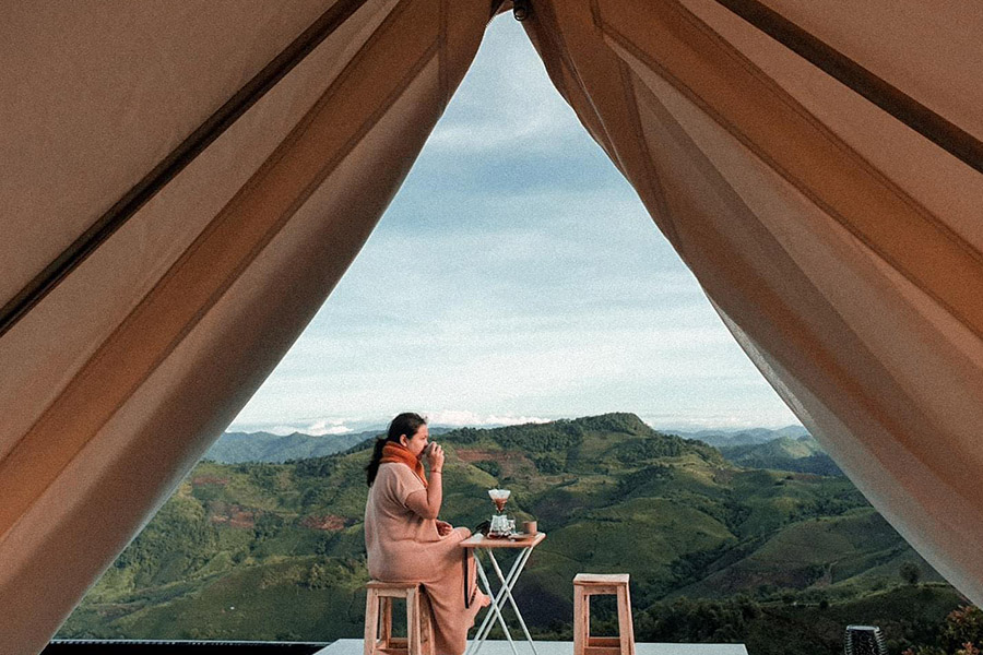 ทรามอนท์ ที่พักน้องใหม่ ใกล้ชิดธรรมชาติแถมเป็นส่วนตัวสุดๆ นอนมองวิวจากห้องพักได้เลย ตัวห้องพักมีทั้งแบบห้องสุดหรู พร้อมอ่างอาบน้ำที่เห็นวิวแบบ 180 องศากันเลยทีเดียว ทั้งวิวภูเขาและธรรมชาติสีเขียว หากใครที่อยากได้บรรยากาศนอนเต็นท์ที่นี่ก็มีเต็นท์กระโจมสีขาวสุดปังไว้รับรอง พร้อมบริการเซ็ทอาหารเช้า ไม่ว่าจะเป็น ชา ดริปคอฟฟี่ ให้ได้ถ่ายรูปสวยๆ กับฉากวิวธรรมชาติลงอวดโซเชียลชิคๆ พลาดไม่ได้แล้ว