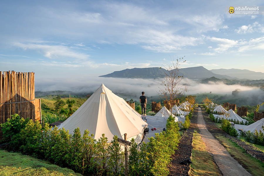 แคมป์ภูชี้ฟ้า ที่พักเต็นท์สุดปังบนโลเคชั่นสวยวิวเขา 360 องศา มีเต็นท์ทั้งหมด 14 หลังมาในกิมมิคเป็นกระต่ายน้อยสุดน่ารักรายล้อมด้วยบรรยากาศสุดโรแมนติกตื่นมาชมวิวทะเลหมอกยามเช้าได้แบบปังๆ เพียงแค่เปิดม่านบังตาก็ได้วิวสวยๆ มาอยู่ตรงหน้าแล้ว สำหรับช่วงเย็นห้ามพลาดเมนูหมูกระทะที่มาเสิร์ฟความอร่อยให้ถึงหน้าเต็นท์ ในส่วนของห้องน้ำให้บริการแบบห้องน้ำรวม เพียงพร้อมด้วยเครื่องทำน้ำอุ่น สบู่อาบน้ำ และแชมพูให้ครบ แต่ถ้าอยากขึ้นภูชี้ฟ้ายามเช้าที่นี่ก็มีบริการรถรับ-ส่งให้ด้วยจ่ายเบาๆ เพียงคนละ 60 บาทรวมแล้วทั้งไปและกลับ มุมถ่ายรูปที่นี่บอกเลยว่าปังทุกมุมเพราะแคมป์ภูชี้ฟ้าจัดมาให้อย่างดี ใครที่อยากไปนอนสัมผัสลมหนาวชิลล์ๆ แนะนำเลย!