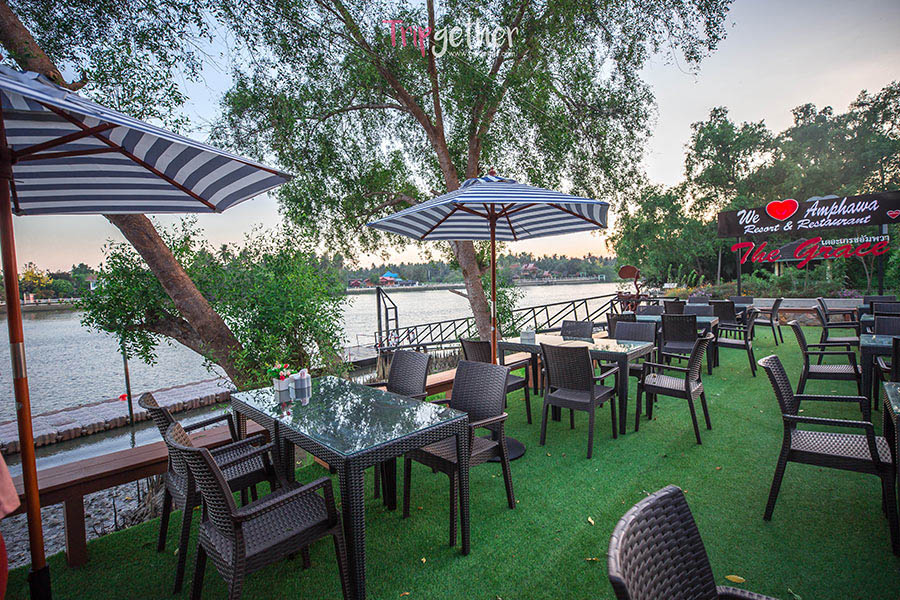 “เดอะเกรซ อัมพวา” ที่พักสไตล์ทรอปิคอลโมเดิร์น บรรยากาศสุดสดชื่นติดริมแม่น้ำแม่กลอง แถมยังล้อมรอบด้วยสวนมะพร้าวและสวนผลไม้ อากาศที่นี่จึงเย็นสบาย มีห้องพัก 7 รูปแบบ 118 ห้อง ให้เลือกพักผ่อนกันตามสะดวก ด้านในห้องพักตกแต่งได้อย่างสวยงาม เน้นวัสดุไม้และสีที่เรียบง่าย เหมาะแก่การพักผ่อนเป็นที่สุด มีบริการห้องอาหารให้คุณมานั่งรับลมเย็นริมแม่นำ้ สำหรับท่านที่ไม่ได้มาพักก็สามารถแวะมาทานได้ เมนูเด็ด “กุ้งแม่น้ำทอดเกลือ” สัมผัสได้ถึงความสดใหม่ของวัตถุดิบอร่อยถูกใจสุดๆ