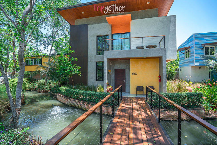ที่พักสไตล์ลอฟท์สุดเท่ริมแม่น้ำแม่กลอง ตัวห้องพักเน้นเป็นสไตล์ปูนขัดผสมผสานกับวัสดุไม้ ตัดด้วยสีสันดูสนุกสนานเข้ากัน มีสะพานเชื่อมหากันระหว่างห้องพักและพาไปยังสระว่ายน้ำใหญ่ใจกลางรีสอร์ท มีมุมสวยๆชิคๆให้เลือกถ่ายรูปกันแบบมากมาย กิจกรรมก็มีหลากหลาย ตอนเช้าตักบาตรริมน้ำ บ่ายก็เล่นน้ำในสระ ตกเย็นก็พายเรือคายัคชมวิถีชีวิตชาวอัมพวาก็ชิลล์ดี เป็นอีกที่พักสวยกิจกรรมครบ เหมาะที่จะมาพักผ่อนกันทั้งครอบครัว “เดอะ ลอฟ์ท อัมพวา”