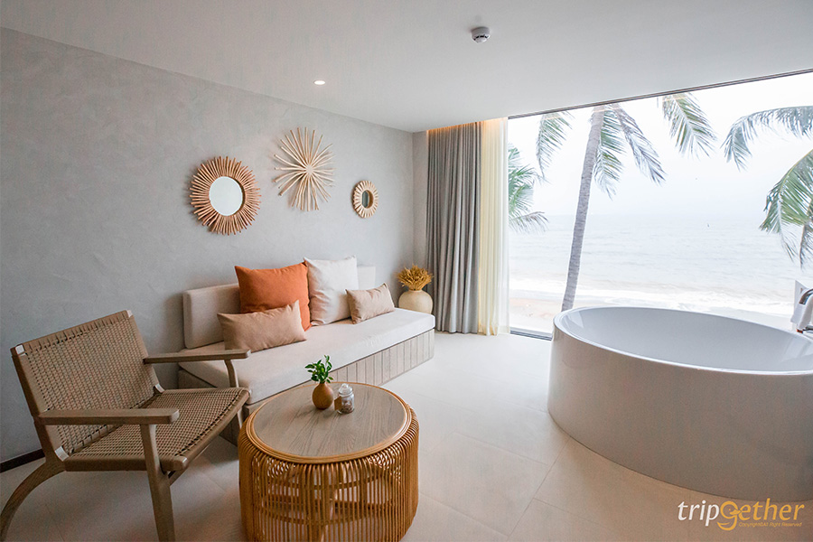 VALA Hua Hin โรงแรมสไตล์มินิมอลสุดเก๋ติดทะเล ตั้งอยู่ระหว่างชะอำ – หัวหิน มาพร้อมแนวคิด “Nature’s Touch with a Modern Design” ตัวที่พักเน้นการตกแต่งด้วยสีขาวคลีน ตัดกับสีเขียวของธรรมชาติและสีฟ้าของท้องฟ้าและน้ำทะเล อีกทั้งยังมีห้องพักให้เลือกหลากหลายรูมไทป์ ใครชอบนอนมองวิวทะเลก็ต้องเลือกห้อง Beachfront เลย เพราะมีกระจกบานใหญ่ มองเห็นทะเลแบบพาโนรามา แถมมีอ่างอาบน้ำให้แช่ตัวข้างกระจกด้วย ภายในห้องพักตกแต่งหรูหรา แต่ยังคงเน้นความเป็นมินิมอลเอาไว้ อีกทั้งยังครบครันไปด้วยสิ่งอำนวยความสะดวกมากมาย ใครที่กำลังมองหาที่พักริมทะเล บรรยากาศดี ดีไซน์ปังๆ อยู่ต้องมาที่นี่เลย