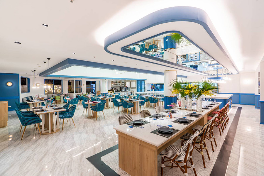 Kram Pattaya รีสอร์ทริมทะเลพัทยา ตัวที่พักถูกดีไซน์มาให้เหมือนอยู่บนเกาะซานโตรินี ประเทศกรีซ เน้นตกแต่งด้วยสีฟ้า – ขาวเป็นหลัก มุมไฮไลท์ของที่นี่คือสระว่ายน้ำกลางแจ้งที่ทอดยาวตามแนวห้องพักทั้งสองฝั่ง ใครชอบว่ายน้ำต้องไม่พลาดที่จะพักห้อง Deluxe Pool Access ที่เปิดประตูออกมาก็ลงเล่นน้ำได้เลย แถมยังมี Floating Breakfast ให้บริการด้วย นอกจากนี้อีกมุมที่ห้ามพลาดก็คือ Kloud Beach Bar เป็นบาร์ริมทะเลที่มาพร้อมกับสระว่ายน้ำ สามารถนั่งชิลล์มองวิวทะเลไปพร้อมๆ กับกินอาหารมื้ออร่อย รับรองว่าถูกใจทั้งสายกินและสายถ่ายรูปเช็คอินแน่นอน