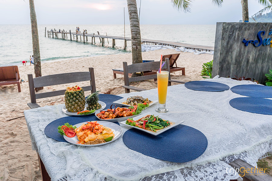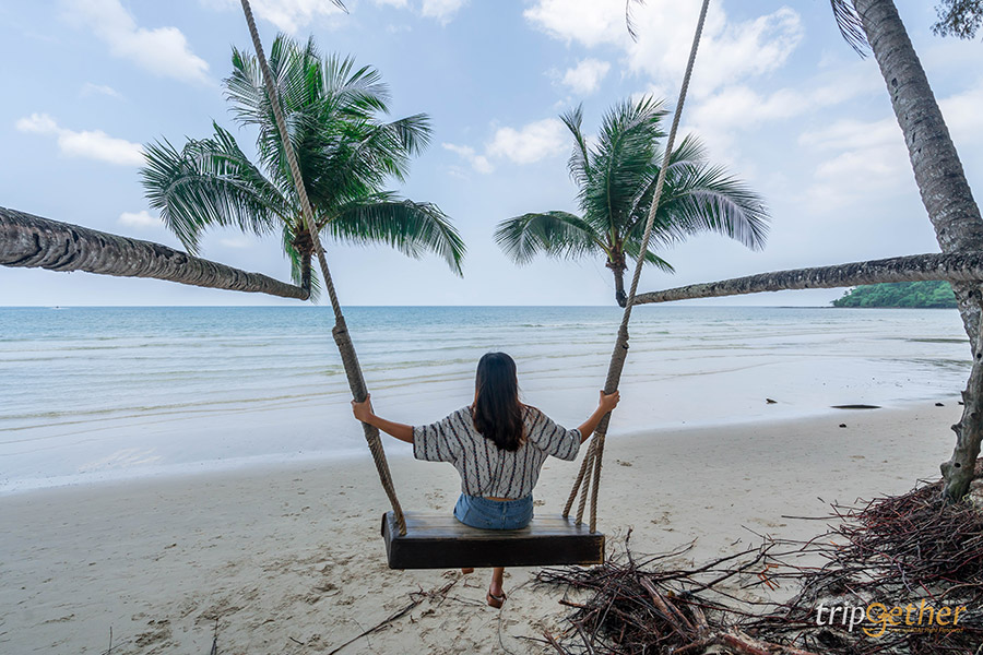 To the Sea The Resort ที่พักบรรยากาศทะเล๊ ทะเล บนเกาะกูดที่รับรองว่าดีต่อใจกับผู้ที่ต้องการมาพักผ่อนรับลมทะเลในบรรยากาศเงียบสงบอย่างแน่นอน ที่พักยังตั้งอยู่ริมหาดทรายขนาดกำลังดีที่สามารถนั่งชิลล์มองวิวพื้นน้ำทะเลได้อย่างสุดลูกหูลูกตา หรือใครอดใจไม่ไหวก็สามารถเปลี่ยนชุดแล้วลงเล่นน้ำทะเลใสๆ ได้เลย แต่ถ้าอยากทำกิจกรรมอื่นๆ ที่พักก็มีทั้งคายัคและแพดเดิ้ลบอร์ดให้เลือกเล่นกันด้วย อีกอย่างที่อยากบอกก็คืออย่าลืมถ่ายรูปคู่กับชิงช้ากลางทะเลจุดเช็คอินสุดฮิตของที่พักกันนะ ส่วนของห้องพักมีให้เลือก 4 แบบคือDeluxe Standard, Deluxe Garden View, Deluxe Sea View และปิดท้ายที่ห้องพักสุดหรูอย่าง Sea View Suite สำหรับคนที่ต้องการพักห้องขนาดใหญ่ ติดสระว่ายน้ำ แถมเดินไม่ไกลจากชายหาด แอบกระซิบว่าทางที่พักมีส่วนของร้านอาหารเปิดให้บริการ สามารถมาฟังดนตรีสด กินอาหารทะเลหรือบาร์บีคิวริมทะเลกันได้