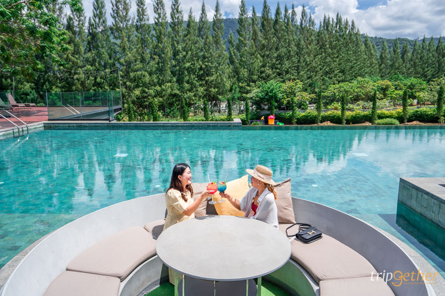 ปลีกตัวจากความวุ่นวายมาพักผ่อนท่ามกลางทิวทัศน์ของขุนเขากันที่ dusitD2 Khao Yai ที่พักดีไซน์โมเดิร์นบนภูเขาที่มาพร้อมบรรยากาศอันเงียบสงบเหมาะแก่การพาครอบครัว ชวนเพื่อนมาดื่มด่ำธรรมชาติเป็นที่สุด ห้องพักมีให้เลือกหลายแบบตั้งแต่ห้องดีไลท์ ห้องดีลักซ์ ห้องดีลักซ์ พลัส ห้องดีคอร์เนอร์ สวีท และห้องดูเพลกซ์ สวีต บอกเลยว่าเขาใส่ใจในทุกการมาเยือน เพราะมีห้องพักที่รองรับวีลแชร์เพื่ออำนวยความสะดวกในการเข้าพักแก่ผู้ที่ใช้วีลแชร์อีกด้วย ไม่เพียงเท่านั้นคนรักสัตว์จะต้องเลิฟเพราะที่นี่ยังมีห้องพักแบบ pet-friendly ให้คุณและสัตว์เลี้ยงเที่ยวเขาใหญ่ด้วยกันได้อีกด้วย ส่วนของไฮไลท์สุดว้าวคือสระว่ายน้ำกลางแจ้งแบบอินฟินิตี้พูลที่ปูนด้วยหินภูเขาไฟจากอินโดลทำให้มีสีเข้มและเห็นลวดลายที่สวยงามในใต้น้ำ ไม่เท่านั้นเมื่อดำลงไปใต้น้ำจะได้ยินเสียงเพลง หรือใครชอบดื่มด่ำบรรยากาศแอบกระซิบว่าจากขอบสระสามารถมองเห็นวิวเขาได้เต็มๆ อีกด้วย dusitD2 Khao Yai ยังมีกิจกรรมต่างๆ ให้ทำเพื่อความเพลิดเพลินกันด้วย ไม่ว่าจะให้อาหารอัลปาก้า ให้อาหารกระต่าย ปีนหน้าผาจำลอง และปั่นจักรยาน สำหรับใครที่กำลังหาที่พักเขาใหญ่ที่เหมาะกับการพาครอบครัวมาพักผ่อนแนะนำที่นี่เลย
