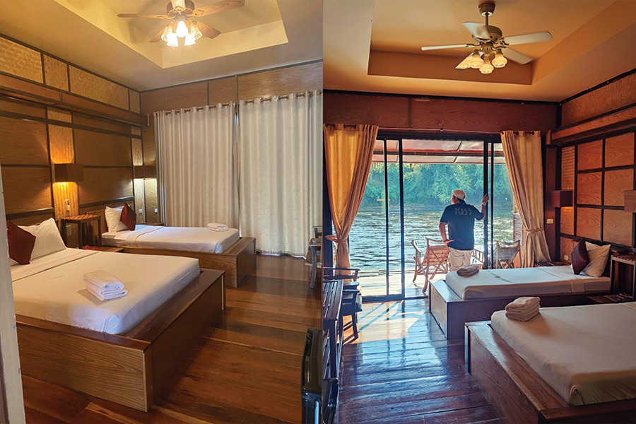 Boutique Raft Resort, River Kwai ที่พักบนแพสไตล์บูติกเน้นสัมผัสธรรมชาติผ่านการตกแต่งอันทันสมัยเน้นใช้งานไม้ในโทนสีสุดอบอุ่น มีห้องพักให้เลือกทั้ง Boutique Suite, River Kwai Suite, Honeymoon Suite และ River Kwai Club ภายในพร้อมสรรด้วยสิ่งอำนวยความสะดวกทั้งไมโครเวฟ กาต้มน้ำ ตู้เย็น และเครื่องปรับอากาศ แถมยังมีกิจกรรมให้ทำทั้งล่องแพเปียก มุมเล่นน้ำ และมุมพักผ่อนสบายๆ เพียบ