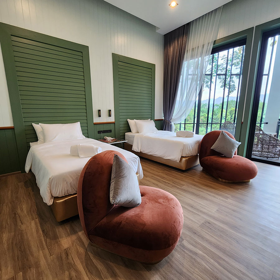 ห้อง River Club เข้าพัก 4 คน ราคาเริ่มต้น 6,000 บาท คนที่ 5 – 6 จ่ายเพิ่มคนละ 500 บาท/รวมอาหารเช้า (ราคาห้องพักอาจมีการเปลี่ยนแปลง กรุณาโทรสอบถามอีกครั้ง)