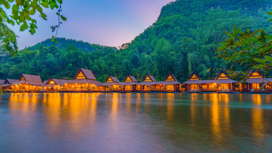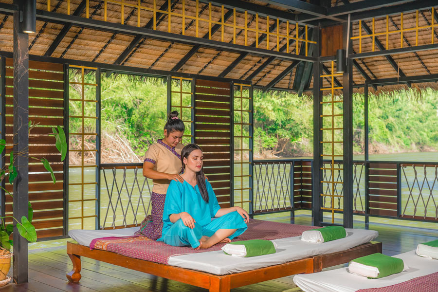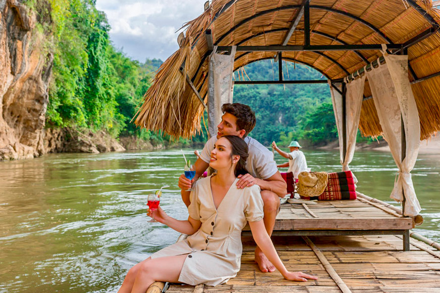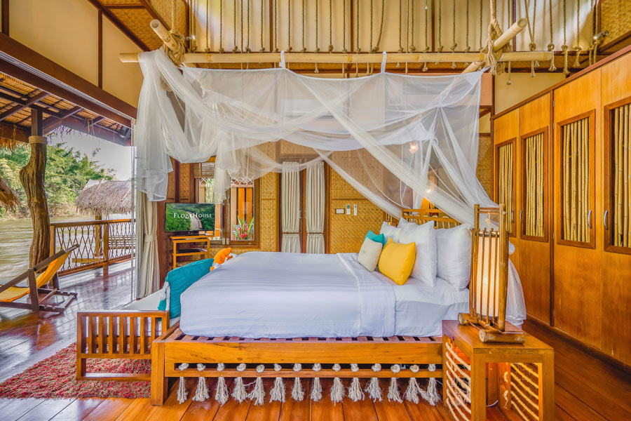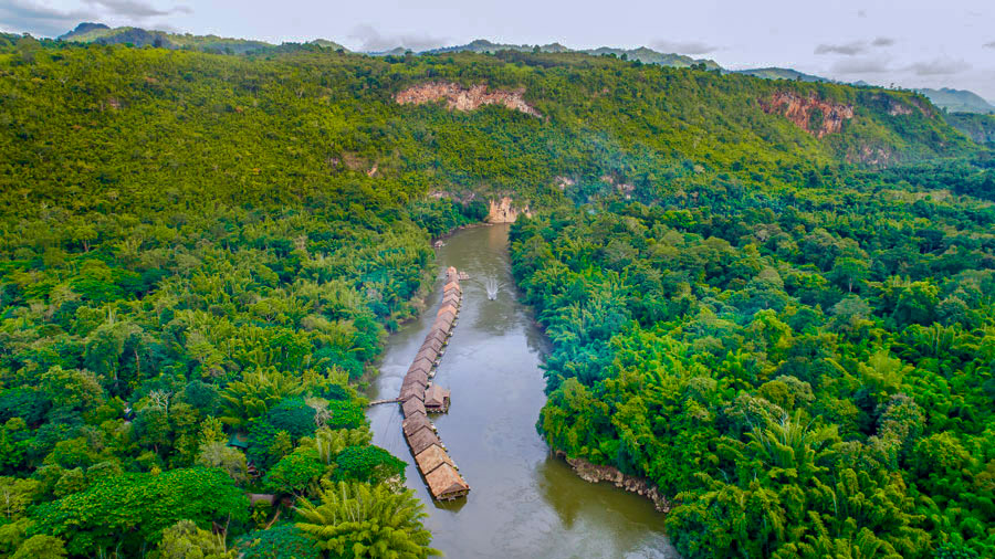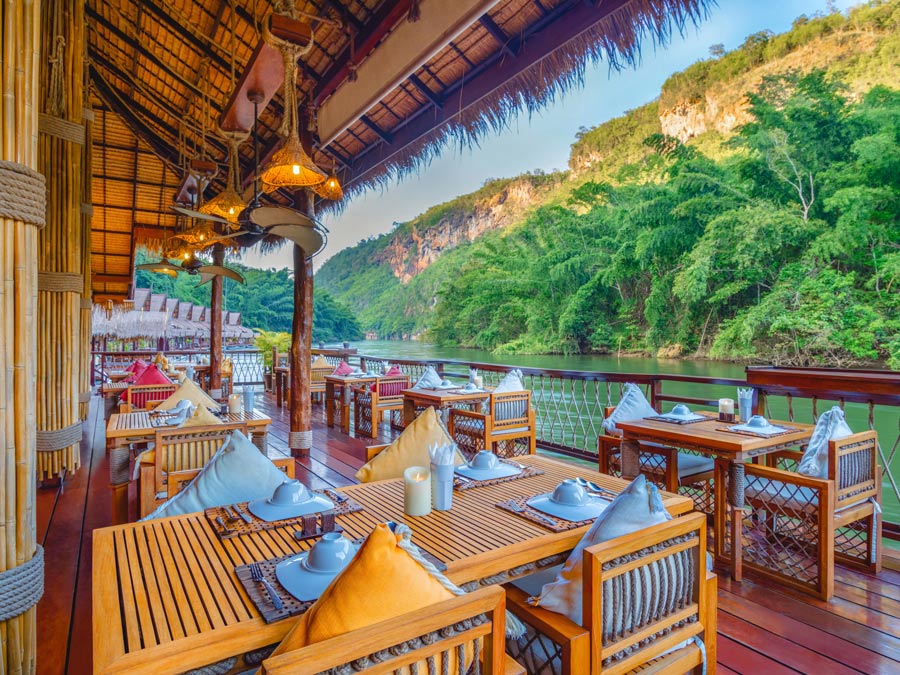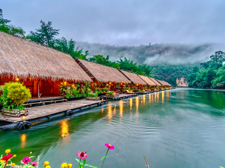 River Kwai Jungle Rafts Floating Hotel ที่พักแพลอยน้ำที่ติดอันดับโลกและได้รับการการันตีคุณภาพจากทั้งสื่อไทยและต่างประเทศ มาพร้อมกับความสงบที่เต็มไปด้วยเสน่ห์ของการพักผ่อนท่ามกลางธรรมชาติตามคอนเซปต์ Back to Nature ที่จะพาผู้เข้าพักได้ใช้เวลาอย่างช้าๆ ไปพร้อมกับธรรมชาติ ปล่อยใจให้ไหลไปกับสายน้ำ ที่นี่มีเรือนแพทั้งหมด 120 ห้อง ซึ่งความโดดเด่นคือภายในเรือนแพจะไม่มีไฟฟ้าและเพียงบางจุดเท่านั้นที่มีสัญญาณโทรศัพท์ เพื่อตอบโจทย์การใช้ชีวิตและพักผ่อนอย่างเงียบสงบกับสายน้ำ ป่าไม้ และดวงดาวในยามค่ำคืน และเรือนแพแต่ละหลังมีสิ่งอำนวยความสะดวกครบครัน พร้อมด้วยระเบียงหน้าห้องที่สามารถกระโดดลงเล่นน้ำเติมความชุ่มฉ่ำได้ นอกจากนี้ยังมีกิจกรรมอื่นๆ อีกมากมาย ไม่ว่าจะเป็นพายเรือคายัค พายซับบอร์ด ล่องแพไม้ไผ่ ไปจนถึงการให้อาหารช้างและชมวิถีชีวิตชาวมอญในหมู่บ้าน River Kwai Jungle Rafts Floating Hotel จึงเป็นอีกหนึ่งที่พักที่สายธรรมชาติไม่ควรพลาด!