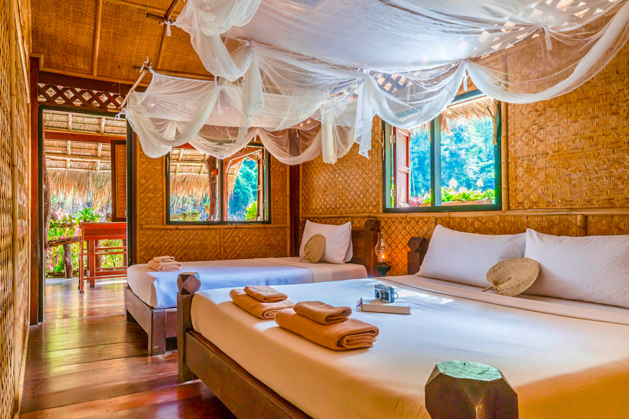 Price: บ้านแพ ราคาเริ่มต้น 2,035 – 2,960 บาท/คืน/รวมอาหารเช้าและอาหารเย็น (ถ้าไม่ต้องการอาหารเย็นลดราคาห้องละ 400 บาท)