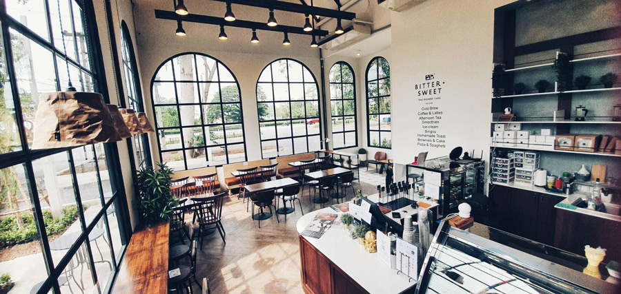 บิทเทอร์สวีท คาเฟ่อาคารไม้สีขาวสไตล์ยุโรปสุดน่ารักที่ห้อมล้อมไปด้วยทุ้งหญ้าและเหล่าต้นไม้ หน้าต่างรูปทรงโค้งบานใหญ่ด้านหน้าของร้านเสริมเสน่ห์ให้กับตัวเรือนที่เป็นร้านและทำให้ภายในร้านสว่างตัดกับสีพื้นผนังเป็นอย่างดี เมนูที่ถือเป็นที่สุดของร้านนี้ก็คือไอศกรีม เพราะร้านนี้เป็นร้านไอศกรีมชื่อดังจากนครสวรรค์ นอกจากนี้ยังมีเมนูของหวานอื่นๆ ที่รสชาติดีไม่แพ้กัน ทั้งบรรยากาศร่มรื่น สบาย และรสชาติอาหารดีขนาดนี้ไม่มาไม่ได้แล้ว