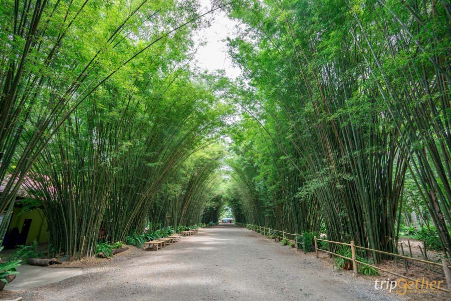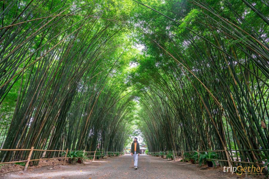 ใครที่กำลังคิดถึงอุโมงค์ป่าไผ่ที่เกียวโตล่ะก็ ขอแนะนำ ซุ้มไผ่ วัดจุฬาภรณ์วนาราม ซึ่งเป็นอุโมงค์ซุ้มไผ่ที่เกิดขึ้นเองตามธรรมชาติ เป็นอีกหนึ่งที่เที่ยวสไตล์ญี่ปุ่นใกล้กรุงเทพฯ ที่น่าไปถ่ายรูปมากๆ อุโมงค์ป่าไผ่แห่งนี้ ทอดยาวประมาณ 800 เมตร และซุ้มต้นไผ่สูงใหญ่ที่โค้งเข้าหากัน ดูเหมือนเป็นอุโมงค์ไผ่คล้ายกับ ป่าไผ่อาราชิยามะ เกียวโตเลยล่ะ บรรยากาศก็ร่มรื่นมากๆ เย็นสบาย หลังจากถ่ายรูปกับซุ้มไผ่ด้านหน้าวัดจุฬาภรณ์วนารามเสร็จแล้ว ก็ไปทำทำบุญ ไหว้พระกันต่อภายในวัด เรียกได้ว่ามาที่เดียวครบเลย
