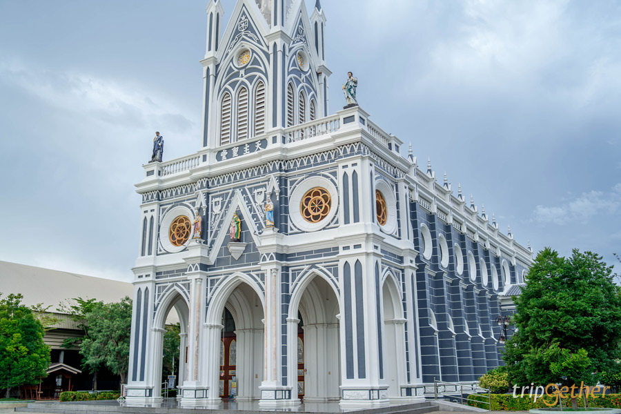 อาสนวิหารแม่พระบังเกิด (Nativity of Our Lady Cathedral) ตั้งอยู่ที่ตำบลบางนกแขวก สร้างขึ้นเพื่อให้เป็นอาสนวิหารประจำสังฆมณฑลราชบุรี เนื่องจากในอดีตพื้นที่ตรงนี้อยู่ในเขตของจังหวัดราชบุรีนั่นเอง สร้างขึ้นเพื่อให้เป็นเกียรติแก่การบังเกิดแก่พระมารีย์ เป็นสถานที่ศักดิ์สิทธิ์ของชาวคริสต์นิกายโรมันคาทอลิกที่อาศัยอยู่รอบๆ ที่นี่สร้างขึ้นตั้งแต่ปี 1980 ใช้เวลาสร้างถึง 6 ปีด้วยกัน อาสนวิหารเป็นสถปัตยกรรมสไตล์โกธิค สร้างด้วยอิฐเผา ผนังฉาบด้วยปูน ภายในประดับด้วยกระจกสีที่มีสีสันสวยงาม มีรูปปั้นและรูปแกะสลักต่างๆ ตามประตู ปัจจุบันยังคงเป็นสถานที่สำหรับประกอบพิธีกรรมของชาวคริสต์ เป็นอีกหนึ่งที่เที่ยวสมุทรสงครามที่คนนิยมเดินทางมาถ่ายรูปพร้อมชื่นชมสถาปัตยกรรมที่สวยงาม