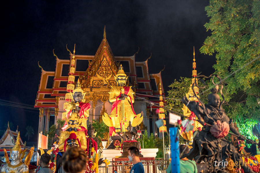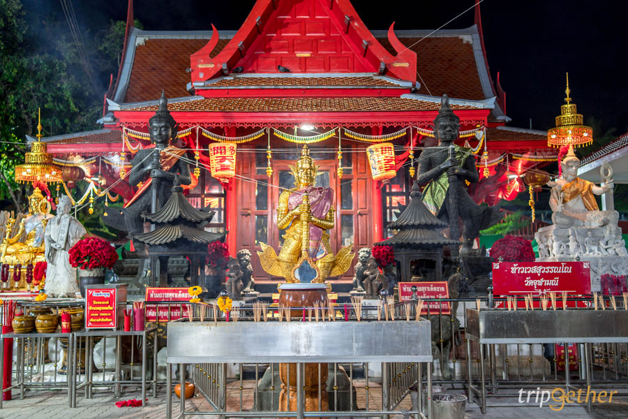 วัดจุฬามณี วัดชื่อดังของสมุทรสงคราม ผู้คนต่างมุ่งหน้ากันมาที่วัดเพื่อสักการะท้าวเวสสุวรรณของวัดจุฬามณี โดยเชื่อว่าขออะไรก็สำเร็จสมใจปรารถนาทุกราย ทำให้ท้าวเวสสุวรรณของที่นี่ได้รับความนิยมมากๆ แถมที่สำคัญคือจุดไหว้ท้าวเวสสุวรรณที่มีทั้งหมด 2 ที่ด้วยกันนั้นเปิดให้บริการตั้งแต่ 6.00 – 00.00 น. เรียกได้ว่าไหว้กันตั้งแต่เช้าจนเที่ยงคืนเลยทีเดียว จะมาตอนไหนก็ได้ไหว้กันทุกคนแน่นอน นอกจากนี้ที่วัดยังมีจุดไฮไลท์อื่นๆ เพิ่มเติมอีก 2 จุด อย่างโบสถ์จัตุรมุขหินอ่อน พื้นโบสถ์เป็นหยกสีเขียวจากปากีสถาน และสังขารที่ไม่เน่าเปื่อยของหลวงปู่เนื่องอดีตเจ้าอาวาส รวมถึงที่วัดยังมีวัตถุมงคลให้บูชาอีกด้วย