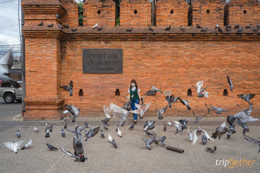 แลนด์มาร์กถ่ายรูปที่ใครมาแอ่วเชียงใหม่จะพลาดไม่ได้เลยก็คือ ประตูท่าแพ กำแพงเมืองประวัติศาสตร์คู่เมืองล้านนา ที่นี่เรียกได้ว่าเป็นศูนย์ใจกลางเมืองเชียงใหม่เลยก็ว่า โดดเด่นด้วยกำแพงอิฐสีส้มให้ฟีลคลาสสิกเบาๆ ไฮไลท์สำคัญอยู่ที่ต้องมาถ่ายรูปกับเจ้านกพิราบตอนบินทั่วทั้งประตู บอกเลยว่าได้ภาพเก๋สุดๆ กลับไปแน่นอน นอกจากนี้ที่บริเวณประตูท่าแพยังเป็นจุดเช็คอินที่จะมีการจัดตกแต่งผลัดเปลี่ยนไปตามการฉลองเทศกาลต่างๆ อย่างสวยงาม เช่น Pride Month Pride Festival, ซุ้มไฟประตูท่าแพในงานประเพณีเดือนยี่เป็ง หากใครมีโอกาสได้มาเชียงใหม่ก็อย่าลืมแวะมาถ่ายรูปเช็คอินกันนะ