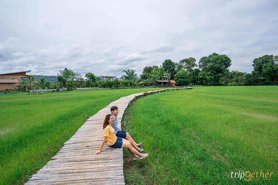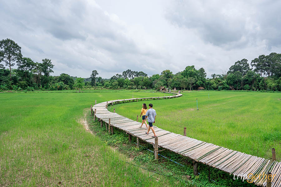 สะพานทุ่งนามุ้ย สะพานที่มีความยาวถึง 150 เมตร โดยก่อนที่จะเข้าไปเยี่ยมชมทุ่งนามุ้ยจะต้องช่วยบริจาคคนละ 10 บาท เพื่อเป็นส่วนในการซ่อมบำรุงสะพานไม้ ในช่วงเดือนสิงหาคมจะได้ชมความกรีนสุดๆ ของทุ่งนามุ้ย โดยภายในทุ่งนามุ้ยจะมีร้านกาแฟเป็นซุ้มเล็กๆ ให้บริการเครื่องดื่มร้อนเย็น สำหรับต้อนรับผู้มาเยี่ยมทุ่งนาแห่งนี้ บอกเลยว่าเหมาะมากที่จะไปเดินเล่นรับลมชิลล์ๆ พร้อมชมทุ่งนาสุดกรีน