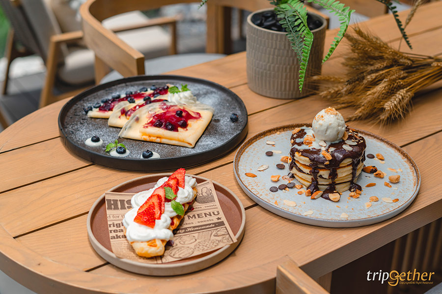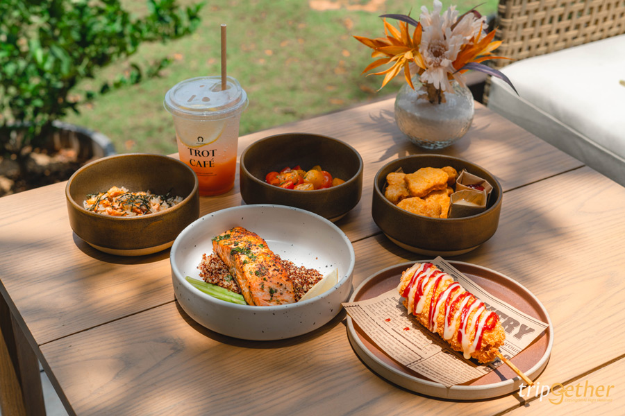 Trot Cafe Khaoyai คาเฟ่ ร้านอาหารกินดื่ม สไตล์คันทรีที่มีกลิ่นอายความเป็นชนบท เรียบง่ายและอบอุ่นเป็นกันเอง บรรยากาศดีมาก กลางทุ่งหญ้าและความร่มรื่นของต้นไม้ กว้างขวาง มีที่นั่งเยอะมาก แถมยังถูกรายล้อมไปด้วยสิ่งมีชีวิตที่เป็นมิตรอย่าง ม้าหลากหลายสายพันธุ์ ส่วนเมนูก็มีเสิร์ฟอย่างจัดเต็มครบทั้งอาหารคาว เมนูกินเล่นรองท้อง ขนมหวาน เค้ก แพนเค้ก และเครื่องดื่ม ทร็อต คาเฟ่ ไม่เพียงแต่เป็น ร้านอาหารกินดื่มเขาใหญ่ สุดชิลล์เท่านั้น เพราะที่มีกิจกรรมให้ทำคอนเท็นต์เยอะมาก! ไม่ว่าจะเป็นนขี่ม้า ให้อาหารม้า ขับรถคลาสสิก ปั่นจักรยาน เรียกได้ว่าเป็น ร้านอาหารกินดื่มเขาใหญ่ ที่ครบจบในที่เดียว