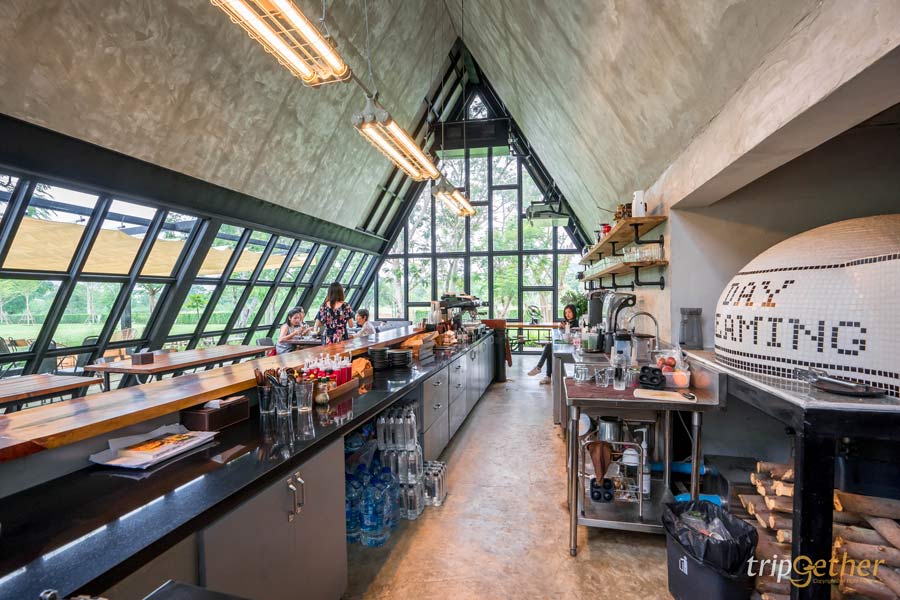 เดย์ดรีมมิ่ง คาเฟ่สวยบรรยากาศดีแห่ง โบนันซ่า เขาใหญ่ ออกแบบสไตล์ Glass House รูปทรงสามเหลี่ยมหน้าจั่ว เพิ่มความเท่ด้วยโครงสร้างเหล็กสีดำเข้ม และกระจกบานใหญ่ที่สามารถมองเห็นธรรมชาติภายนอกได้อย่างเต็มตา ตัวร้านโอบล้อมด้วยต้นไม้น้อยใหญ่ท่ามกลางขุนเขา ทำให้รู้สึก เป็นอีกหนึ่ง ร้านอาหารกินดื่มเขาใหญ่ ที่ทริปเก็ทเตอร์คัดมาแล้วว่ามุมถ่ายภาพเยอะมาก ไม่ซ้ำใคร ที่นี่โดดเด่นมากในเรื่องของเมนูกาแฟเมล็ดนำเข้ามีกลิ่นหอม และยังมีเมนูเครื่องดื่มมากมาย รวมถึงพาสต้า homemade สูตรพิเศษของทางร้าน และพิซซ่าอบเตาถ่าน แบบออริจินอล จากเชพฝีมือเยี่ยมที่มีความพิถีพิถันในทุกๆรายละเอียด นอกจากนี้ยังมีอาหารสไตล์อิตาเลียนหลากหลายเมนูให้ได้ลองชิมกัน