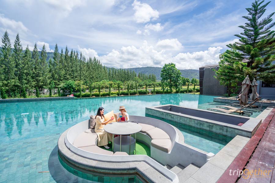 หมูสีกริลล์ ร้านอาหารกินดื่ม ท่ามกลางขุนเขาและบรรยากาศสุดแสนสบาย มีโซนที่นั่งทั้งอินดอร์และเอาท์ดอร์ ในส่วนของโซนอินดอร์จะเป็นห้องแอร์เย็นฉ่ำ มีกระจกใสบานใหญ่ให้ชมวิวด้านนอก และโซนเอาท์ดอร์จะมีโซนที่นั่งที่ยื่นลงไปบนสระว่ายน้ำ ด้านหลังเป็นวิวทิวทัศน์สีเขียวขจีสวยงามตระการตาของเขาใหญ่ บอกเลยว่ามีมุมถ่ายรูปสวยๆ สำหรับสายโซเชียลเพียบ! เมนูอาหารของทานร้านจะเน้นเป็นเมนูอาหารไทยและอาหารนานาชาติสไตลล์ฟิวชั่น และห้ามพลาดเมนูสุดพรีเมียมอย่าง Australian Lamb Chops เนื้อสันในออสเตรเลียย่าง จัดจานมาอย่างน่ากินสุดๆ แถมยังมีของหวานอร่อยๆ และเครื่องดื่มที่รวมถึงค็อกเทลและม็อกเทลให้บริการอีกด้วยนะ เรียกได้ว่าเป็นอีกหนึ่ง ร้านอาหารกินดื่มเขาใหญ่ ที่ไม่ควรพลาด