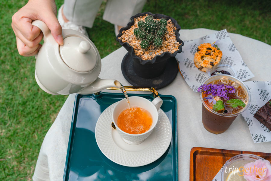ไปกันต่อกับ ร้านอาหารกินดื่ม สไตล์บ้านสวนที่คอกาแฟไม่ควรพลาดอย่าง ลอสท์ คอฟฟี่ เฮ้าส์ ด้วยเมล็ดกาแฟที่มีให้เลือกถึง 3 blend ทั้งคั่วอ่อน คั่วกลาง และคั่วเข้ม รวมไปถึงเมล็ดกาแฟพิเศษหอมๆ อีก 3 ชนิด ให้สายกาแฟได้ลิ้มลองเมล็ดกาแฟที่ทางร้านได้คั่วเอง สำหรับคนไม่กินกาแฟก็ยังมีเมนูเครื่องดื่มอื่นๆ อีกด้วยแ แถมยังมีโฮมเมดเบเกอรี่ อบสดใหม่ทุกวันโดยเฉพาะ Biscoff และคาราเมลชีสเค้ก ในส่วนของตัวคาเฟ่จะเป็นอาคารเรือนกระจกตั้งอยู่ในสวน ล้อมรอบไปด้วยภูเขาและต้นไม้เขียวขจี นอกจากนี้ ลอสท์ คอฟฟี่ เฮ้าส์ เป็นร้าน Pet friendly ที่ต้อนรับน้องหมา น้องแมว ทุกสายพันธุ์สามารถเข้าโซนห้องแอร์ หรือจะวิ่งเล่นในสวนก็ได้เลย