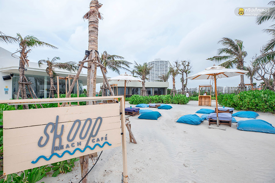 มานั่งรับลมทะเลแบบเพลินๆ กันที่ร้าน Skoop beach Cafe คาเฟ่ริมทะเลหัวหิน บรรยากาศสุดชิลล์ เหมาะกับการมานั่งพักผ่อนหย่อนใจ แถมได้ลิ้มรสขนมหวานที่มีเอกลักษณ์เฉพาะตัวของที่นี่อีกด้วย ใครเป็นสายขนมหวานต้องหลงรักที่นี่แน่นอน ภายในร้านตกแต่งอย่างโปร่งโล่งสบายเน้นการใช้โทนสีขาวฟ้าเข้ากับบรรยากาศริมทะเล มีมุมสำหรับถ่ายรูปริมทะเลให้เลือกแชะภาพได้แบบไม่ซ้ำมุมกันเลยทีเดียว
