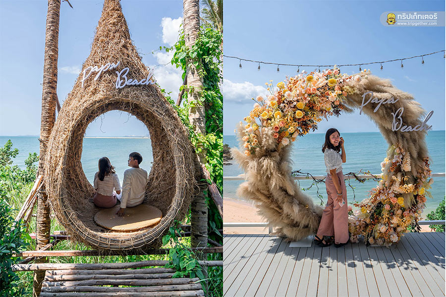 มาร้านนี้ก็เหมือนได้ไปบาหลีแล้วค่ะ พูดเลย! ปาป้า บีช พัทยา เป็นทั้งคาเฟ่และร้านอาหารริมทะเลพัทยา มีให้บริการทั้งอาหาร ของหวานรวมไปถึงเครื่องดื่ม ครบจบในที่เดียว! ส่วนบรรยากาศก็ดี๊ดี มองไปทางไหนก็เจอแต่มุมถ่ายรูปเต็มไปหมด ภายในร้านจะเน้นโทนสีธรรมชาติ ขาว – น้ำเงินและวัสดุอย่างไม้ไผ่มาเป็นส่วนประกอบ นอกจากนี้ยังมีมุมถ่ายรูปใหม่ๆ ที่ทางร้านจัดทำขึ้นเพื่อให้ถ่ายรูปโดยเฉพาะและมีมุมรังนกสไตล์บาหลี ที่เปรียบเสมือนไฮไลท์ของที่นี่เลยก็ว่าได้ มาแล้วไม่ถ่ายรูปกับมุมนี้ถือว่ามาไม่ถึงเลยนะคะ
