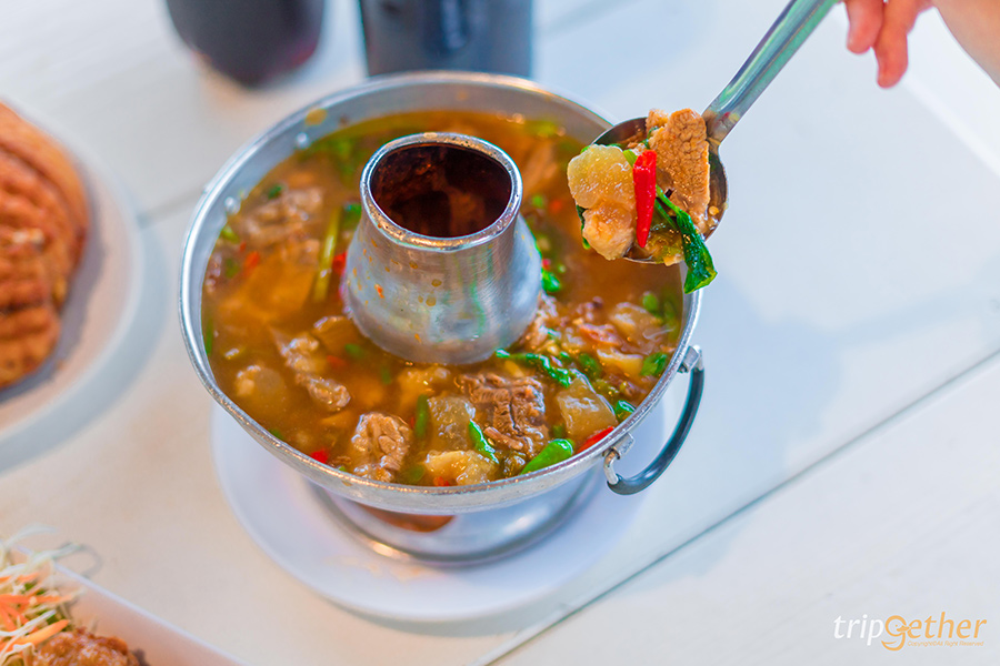 สำหรับใครที่อยากได้ร้านอาหารพัทยาแนวครอบครัว แบบที่ผู้ใหญ่ชอบและถูกใจเด็กๆ ต้องมาร้าน ครัวบ้านป้าบุญ สาขา 2 อาหารอร่อย ตัวร้านมีพื้นที่กว้างขวาง โอบล้อมไปด้วยความร่มรื่นของต้นไม้ใบหญ้า และมีสระน้ำใหญ่กลางร้านมีการแบ่งสัดส่วนแต่ละโซนได้อย่างลงตัว โดยโซนที่นั่งในร้านมีให้เลือกมากถึง 8 โซน ซึ่งโซนที่มีความเป็นส่วนตัวก็มีโซนมะม่วง โซนมะขาม โซนริมน้ำ และโซนกลางน้ำ เป็นที่นั่งซุ้มติดริมน้ำที่บรรยากาศดีมาก นอกจากนี้ทางร้านยังมีโซนเครื่องเล่นเด็กและให้อาหารปลาคาร์ป ส่วนเมนูอาหารทางร้านมีให้เลือกเยอะมากทั้งประเภทต้ม ยำ ผัด ทอด แถมอาหารทะเลก็เนื้อเน้นๆ ตัวใหญ่ๆ อย่างเมนูฮ่อยจ๊อปูชิ้นโต ที่พอหั่นออกมาเจอเนื้อปูเป็นก้อนๆ มีรสชาติเผ็ดร้อนของพริกไทย กินคู่กับน้ำจิ้มบ๊วยคือเข้ากันสุดๆ และอีกเมนูที่อยากแนะนำคือเนื้อตุ๋นหม้อไฟ เสิร์ฟมาในหม้อไฟร้อนๆ น้ำซุปหอมเครื่องต้มยำ มีความเผ็ดแซ่บ เนื้อชิ้นใหญ่นุ่มกัดเต็มคำ กินพร้อมกับข้าวสวยร้อนๆ สักจาน บอกเลยว่าเอาไปเต็มสิบ สุดสัปดาห์นี้อยากพาครอบครัวมาอิ่มอร่อยกับบรรยากาศดีๆ ต้องมาที่นี่แล้ว