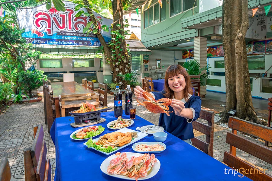 อีกหนึ่งร้านย่านหาดจอมเทียนที่ต้องไปลิ้มรสความอร่อยนั่นก็คือ ลุงไสว ซีฟู้ด ร้านอาหารทะเลที่อร่อย แถมดังมาอย่างยาวนานเกือบ 50 ปี ตัวร้านตั้งอยู่สุดหาดจอมเทียน บรรยากาศสบายๆ เป็นกันเอง ภายในร้านเปิดโล่งรับลมทะเลแบบเต็มๆ นั่งได้ทั้งด้านในและด้านนอก ส่วนวัตถุดิบของทางร้านบอกเลยว่าคัดอย่างดีสดใหม่ทุกวันแน่นอน โดยเฉพาะช่วงวันศุกร์ – อาทิตย์ ทางร้านจะลงของสดเยอะมาก และเมนูเด็ดที่มาแล้วไม่ควรพลาดนั่นเมนูแรกเลยคือปลากะพงทอดน้ำปลา ปลากะพงตัวใหญ่เต็มจานกับน้ำปลาสูตรเด็ดที่กินคู่กับน้ำยำคือครบเครื่องมากๆ ต่อมาคือกุ้งผัดพริกเกลือ เนื้อกุ้งสดกรึ๊บ หอยตลับผัดฉ่าทางร้านผัดแบบอร่อยถึงเครื่อง รสชาติจัดจ้าน ส่วนแกงคั่วปูทะเลหน่อไม้ดองเมนูนี้ทางร้านใช้ปูทั้งตัว แกงกับเครื่องแกงรสชาติเข้มข้นหอมๆ กินกับข้าวสวยร้อนๆ คืออร่อยฟินไม่ไหว และปิดท้ายด้วยปูม้านึ่ง เนื้อปูสดมาก กินแบบไม่ต้องจิ้มน้ำจิ้มยังไหว เนื้อปูหวานมาก ยิ่งจิ้มน้ำจิ้มซีฟู้ดด้วยแล้วอร่อยแซ่บสุดๆ ใครที่มองหาร้านอาหารทะเลอร่อยปักหมุดร้านนี้เลยจ้า