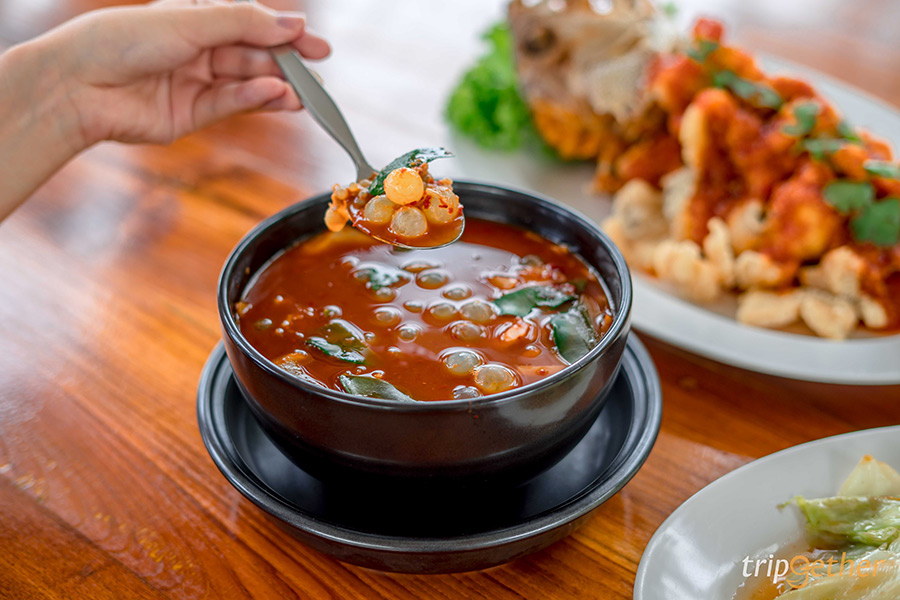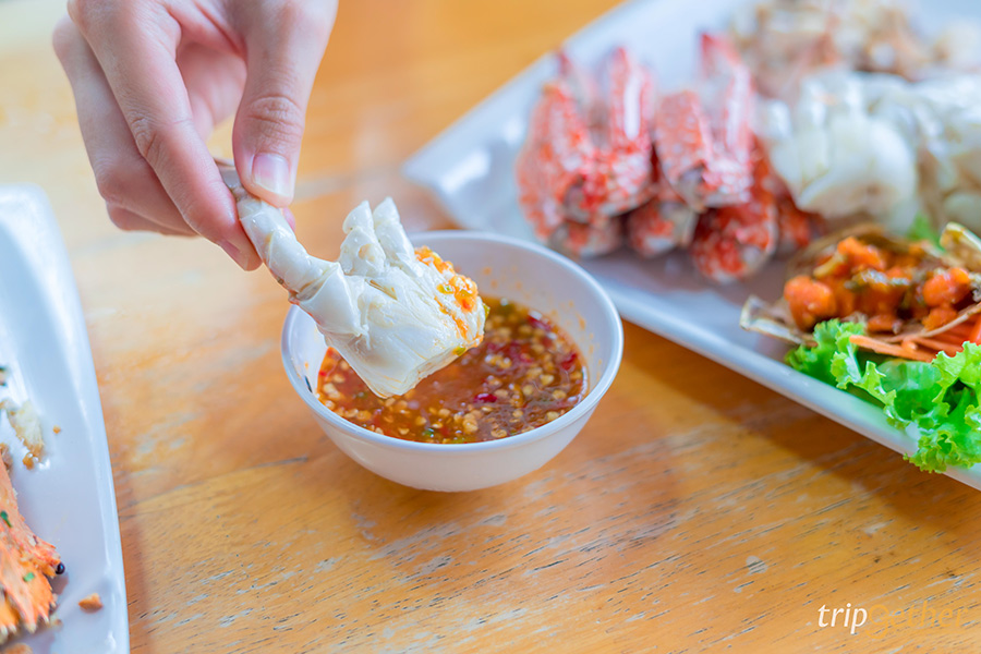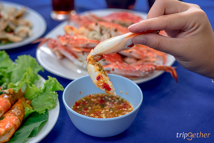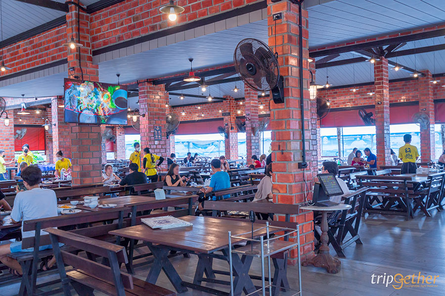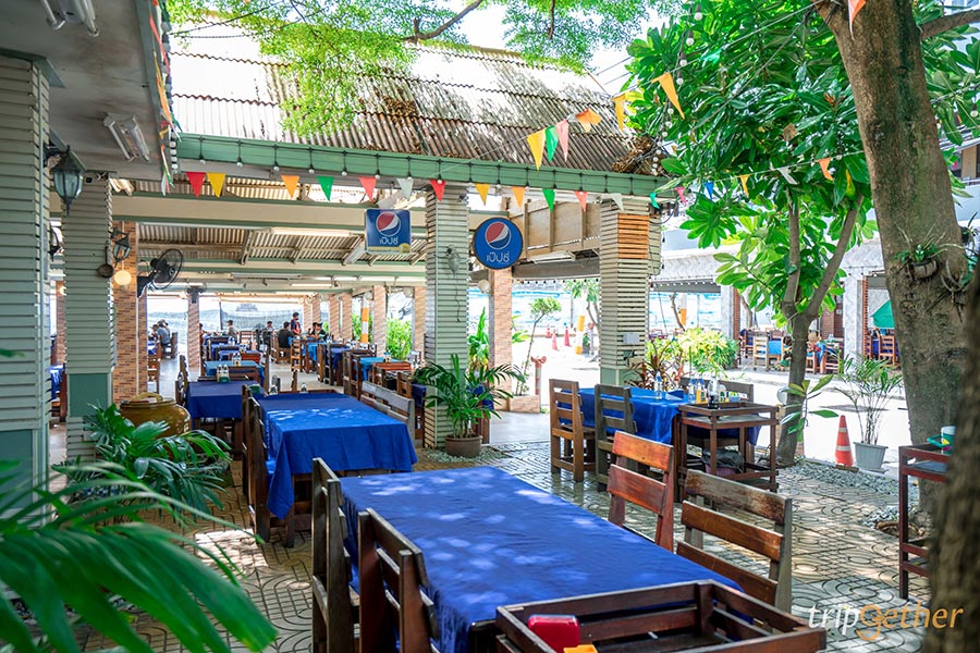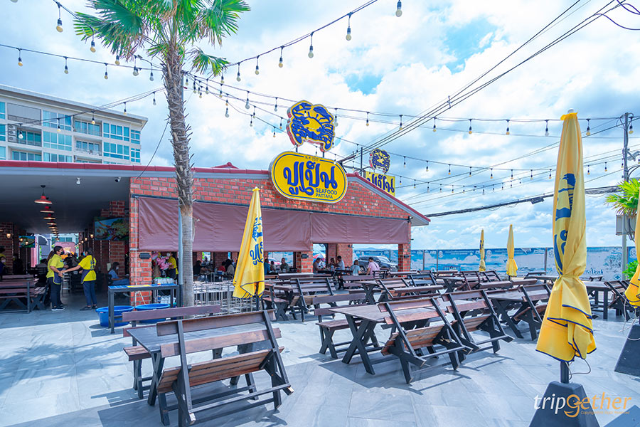 อีกร้านซีฟู้ดสุดฮิตของถนนเลียบชายหาดจอมเทียน เรียกได้ว่าเป็นร้านที่มีลูกค้าแวะเวียนมาตลอด นั่นก็คือร้าน ปูเป็นซีฟู้ด ร้านอาหารพัทยาที่โดดเด่นตั้งแต่ทางเข้าหน้าร้านด้วยรูปปั้นปูตัวใหญ่และอาคารอิฐสีส้มที่ให้ฟีลเหมือนอยู่ต่างประเทศ ส่วนโซนที่นั่งเป็นแบบโอเพ่นแอร์มีให้เลือกหลากหลาย ไม่ว่าจะเป็นโซนติดทะเล โซนอินดอร์ โซนนั่งชั้น 2 ไม่ใช่แค่นี้ ถ้าใครอยากมานั่งชิลล์ๆ ฟังดนตรีสดก็แนะนำให้มาช่วงเย็นๆ เวลา 18.00 – 21.00 น. จะมีที่นั่งโซนลานดนตรี กินข้าวเคล้าเสียงดนตรี มีลมพัดอ่อนๆ ตลอด บอกเลยว่าฟินมาก ส่วนเมนูที่มาแล้วต้องสั่งก็คือ ปลาหมึกผัดน้ำดำ รสชาติอร่อยนัวๆ ปลาหมึกใหญ่พอดีคำ กินกับข้าวสวยอร่อยเข้ากันสุดๆ และอีกเมนูแกงคั่วเนื้อปูมะพร้าวอ่อน รสจัดจ้าน หอมเครื่องแกง และเนื้อปูของร้านสด เด้ง ชิ้นใหญ่ บอกเลยว่ารสเผ็ดแซ่บแบบนี้ได้ดื่มคู่กับเป๊ปซี่ซ่าๆ ชื่นใจสุดๆ