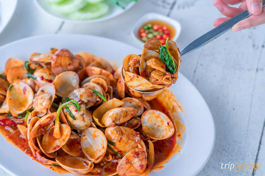ใครที่มาเที่ยวย่านสะพานปลานาเกลือต้องปักหมุดกันที่ ร้านเชลล์ ตังเก ซีฟู้ด ร้านอาหารทะเลบรรยากาศดีที่เปิดมากว่า 40 ปี ตัวร้านตั้งอยู่ริมทะเล มีลมพัดเย็นสบายตลอดทั้งวัน เหมาะกับการพาครอบครัวมานั่งกินอาหารชิลล์ๆ ฟังเสียงคลื่น ทางร้านมีโซนให้เลือกทั้งอินดอร์ที่เป็นห้องแอร์และเอาท์ดอร์รับลมทะเลที่มีทั้งที่นั่งในร่มและเปิดโล่งแบบไม่มีหลังคา ใครที่มาในช่วงแดดร่มลมตกแนะนำโซนด้านนอกเลย เพราะนอกจากจะได้รับลมแล้วยังเห็นวิวทะเลสวยๆ อีกด้วย สำหรับเมนูของที่นี่เราขอแนะนำจานแรกเป็นปลากะพงทอดราดพริก ปลากะพงตัวใหญ่ทอดกรอบๆ ราดด้วยน้ำพริกราดสูตรเด็ดรสชาติอร่อยกลมกล่อม ต่อด้วยหมึกคลุกแป้งทอดกินคู่กับน้ำจิ้มบ๊วยเข้ากันมากสั่งมากินเล่นๆ เพลินๆ หมดเฉยยยยย กินคู่กับข้าวร้อนๆ ยิ่งฟินเฟ่อร์ไปอีก และยังแนะนำเมนูหอยตลับผัดพริกเผา หอยตลับตัวใหญ่ผัดกับพริกเผารสชาติเข้มข้น อร่อยห้ามพลาด และปิดท้ายข้าวผัดปูจานใหญ่ที่เนื้อปูมาแบบเน้นๆ แต่ถ้าจะให้ครบสูตรการกินอาหารให้อร่อยก็ต้องตบท้ายด้วยเป๊ปซี่เย็นๆ ซ่าๆ นี่แหละใช่เลย