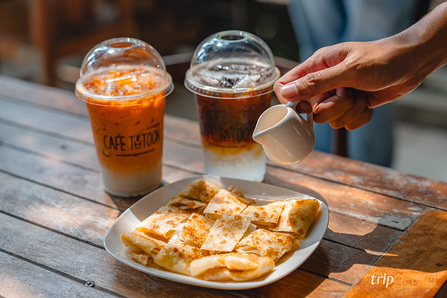 คาเฟ่ตู่ตูน คาเฟ่เล็กๆ สุดชิคของราชบุรี พูดถึงที่มาของคาเฟ่นี้เกิดจากการรวมตัวกันของคนในครอบครัว พี่น้องช่วยกันทำอาหารและดีไซน์ร้านก็ออกแบบด้วยตัวเอง ดังนั้นบรรยากาศในร้านจึงเต็มไปด้วยความอบอุ่น เรียบง่าย และเป็นกันเอง ที่นั่งส่วนใหญ่จะเป็นเอาท์ดอร์กลางสวน อากาศไม่ร้อน มีร่มเงาของต้นไม้ใหญ่ รวมถึงมีบ่อน้ำกลางร้านพร้อมด้วยปลาคาร์ปหลากสีสัน ดูแล้วสดชื่นสุดๆ นอกจากนี้ยังมีน้องเป็ดคอลดั๊กคอยต้อนรับด้วย ในส่วนเมนูจะเป็นอาหารฮาลาล เด่นเรื่องโรตีแป้งนวดสดใหม่ทุกวัน เนื้อแป้งหนานุ่ม เคี้ยวหนุบหนับ และมาแล้วต้องสั่งโรตี แกงเขียวหวานไก่ เล้งปลาทูรสจัด เนื้อสะเต๊ะ ต้มยำไข่กระต๊าก ทุกจานรสแซ่บจัดจ้าน อีกทั้งยังมีเครื่องดื่มและโรตีหน้าต่างๆ ใครชอบบรรยากาศชิลล์ๆ อาหารอร่อย มาที่นี่รับรองไม่ผิดหวัง