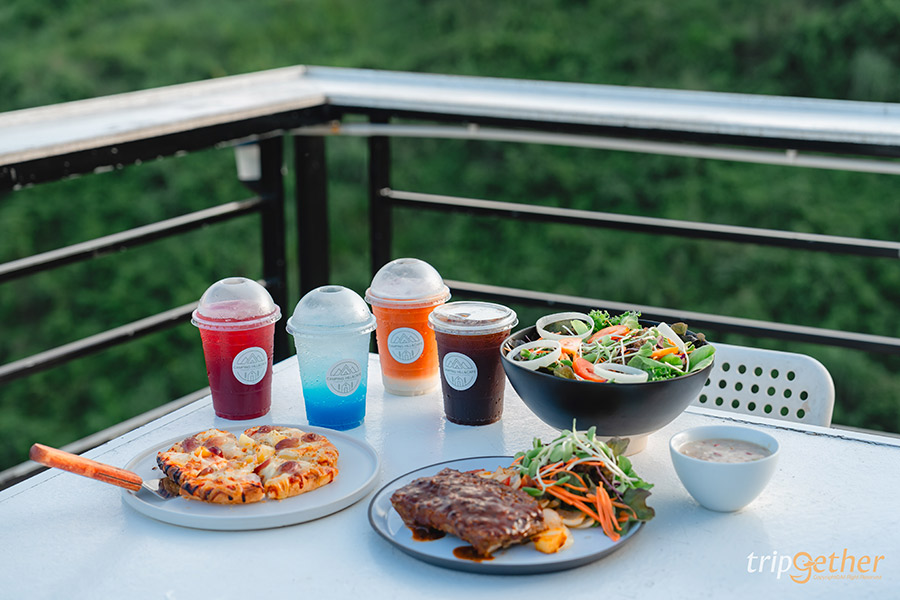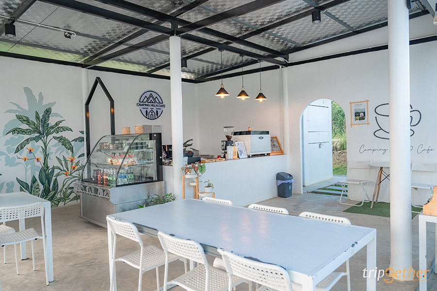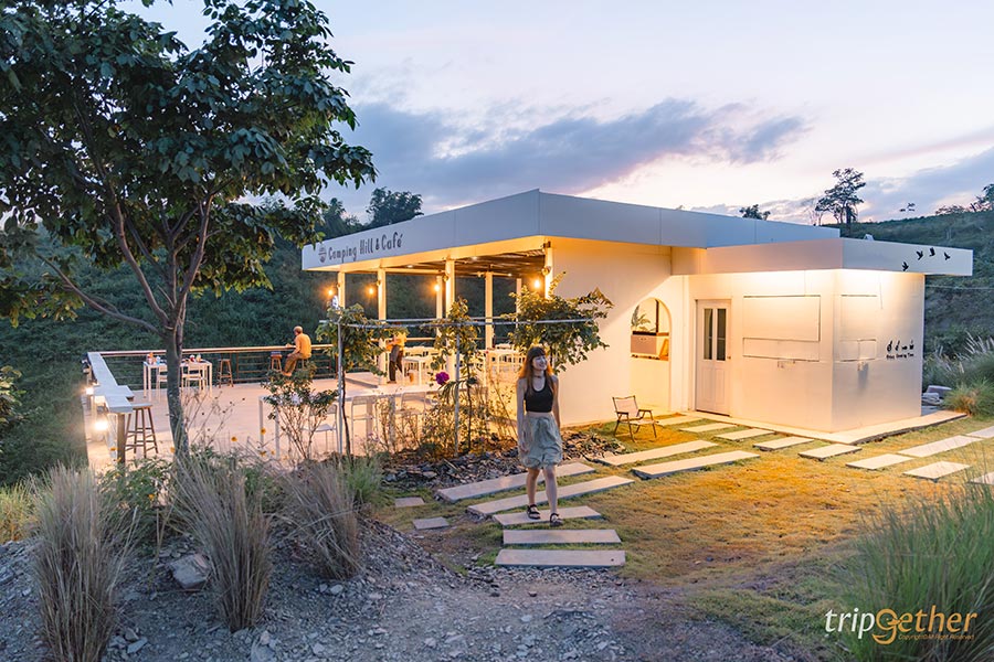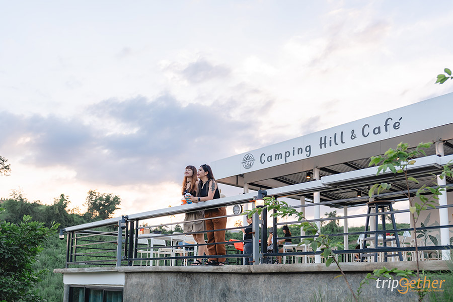เดินทางผ่านเนินเขามากมาย เพื่อมาดูวิวแนวเขาที่สวยที่สุด Camping Hill&Cafe ตั้งอยู่บนยอดเขา มองเห็นวิวทิวทัศน์แบบ 360 องศา บอกเลยว่าธรรมชาติที่นี่อุดมสมบูรณ์มาก ลักษณะเป็นแนวเขาสลับซับซ้อน สวยจนได้ชื่อว่า “สะปันราชบุรี” ช่วงเวลาที่เหมาะกับการมานั่งชิลล์ก็คือช่วงเย็นที่พระอาทิตย์ใกล้ตกดิน บรรยากาศดีมาก บวกกับร้านเปิดโล่ง ทำให้รับลมได้เต็มๆ และเห็นวิวแบบไม่มีอะไรมากั้น เมนูมีเครื่องดื่มเย็นๆ ทั้ง Coffee และ Non-Coffee ส่วนอาหารจะเป็นสไตล์อิตาเลี่ยน ที่แนะนำ คือ ซี่โครงหมูบาร์บีคิว พิซซ่าฮาวายเอี้ยน และสลัดทูน่า นอกจากจะเป็นคาเฟ่ ที่นี่ยังมีลานกางเต็นท์ สามารถมาแคมป์ปิ้ง รับลมหนาวได้เลย