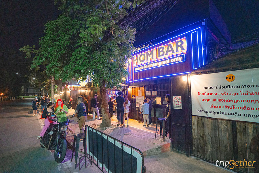 Hom Bar ร้านนั่งชิลล์ฟีลดีที่มีดนตรีสดให้ฟังสบายๆ สลับกับ DJ เปิดเพลงให้ฟังแบบยาวๆ ตลอดทั้งคืน นอกจากนี้ยังมีดนตรีสดให้ฟังไป ร้องตามไปตามฟีลอีกด้วย ซึ่งจะเริ่มเล่นตั้งแต่ 19.00 น. เป็นต้นไป ตัวร้านจะแบ่งออกเป็นโซนอินดอร์และเอาท์ดอร์สุดกว้างขวาง ในส่วนของเมนูเครื่องดื่มและอาหาร ก็มีให้เลือกเพียบ ซึ่งมีทั้งแนวอาหารเหนือให้ด้วยนะ ส่วนเครื่องด่มที่มาแแล้วต้องลองสั่งดูก็คือ หมีใจดำ และหมีใจดี แนะนำเลยว่าใครอยากหาร้านนั่งสบายๆ ต้องมาร้านนี้เลย