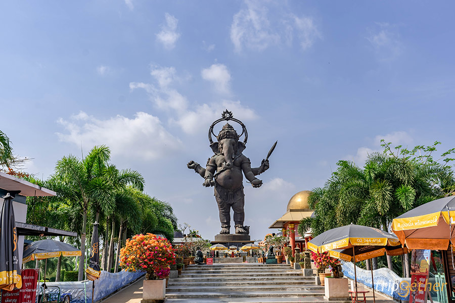 ปิดท้ายกันที่ อุทยานพระพิฆเนศ องค์ยืน คลองเขื่อน ตั้งอยู่ริมฝั่งแม่น้ำบางปะกง เป็นพระพิฆเนศองค์ยืนเนื้อสำริดที่ใหญ่ที่สุดในโลก ขนาดความสูง 39 เมตร ที่มีชื่อว่าพระพิฆเนศปางยืน องค์สำริด สำเร็จ สมปรารถนา เนื่องจากพระหัตถ์ทั้ง 4 ถือ กล้วย มะม่วง ขนุน และอ้อย ที่พระบาทยังมีบริวารอย่างหนูกอดมะพร้าวอยู่ด้วย ซึ่งแสดงถึงความอุดมสมบูรณ์นั่นเอง ผู้คนจึงนิยมมาขอพรให้ประสบความสำเร็จในเรื่องการงานและการค้าขาย นอกจากนั้นบริเวณอุทยานฯ ยังมีเทพมากมายให้กราบไหว้ขอพรเช่น พระศิวะ พระแม่อุมามหาเทวี พระพรหม และทวยเทพแดนมังกร วันหยุดเสาร์อาทิตย์ใครแพลนเที่ยวฉะเชิงเทราอย่าลืมแวะมาสักการะพระพิฆเนศเพื่อความปังกันได้